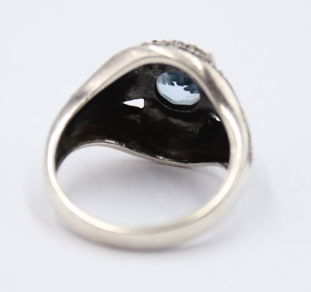 925er Silber-Ring, wohl Blautopas und Markasiten (3 fehlen), 5,1gr., RG 52