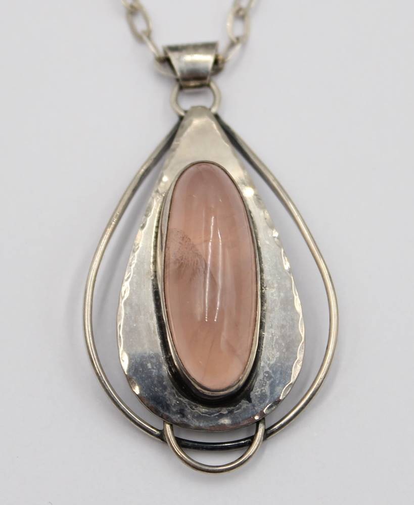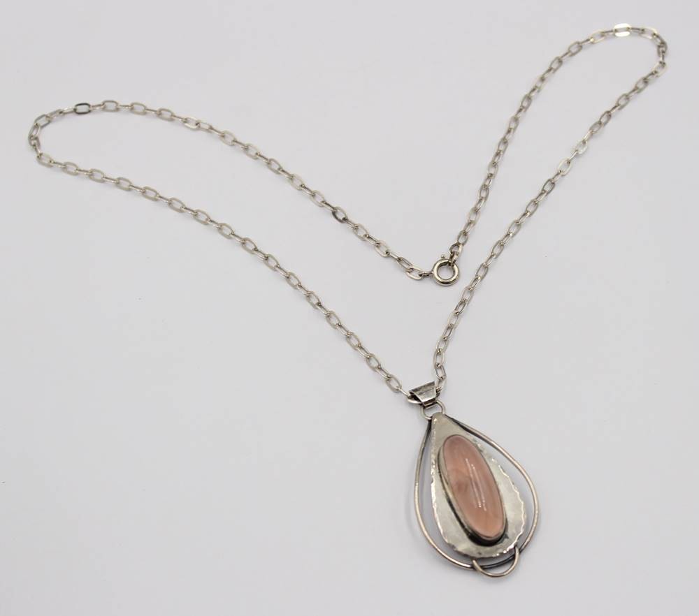 925er Silberanhänger m. Rosenquarz an 835er Silberkette, zus. 15,9gr., L-49cm Anh. L-5,5cm [1]
