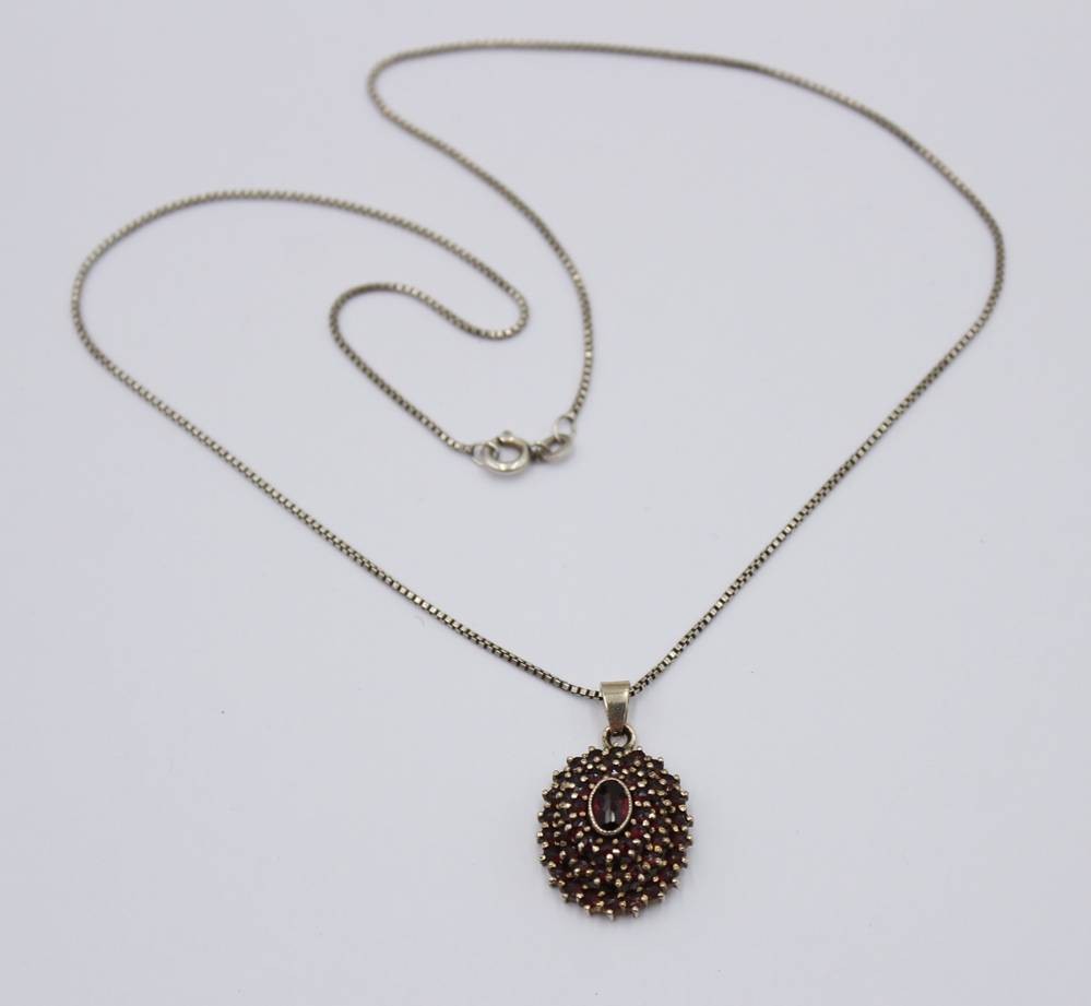 925er Silberkette mit Granatanhänger, zus. 6,7gr., L-46cm Anh. 2,8cm [1]