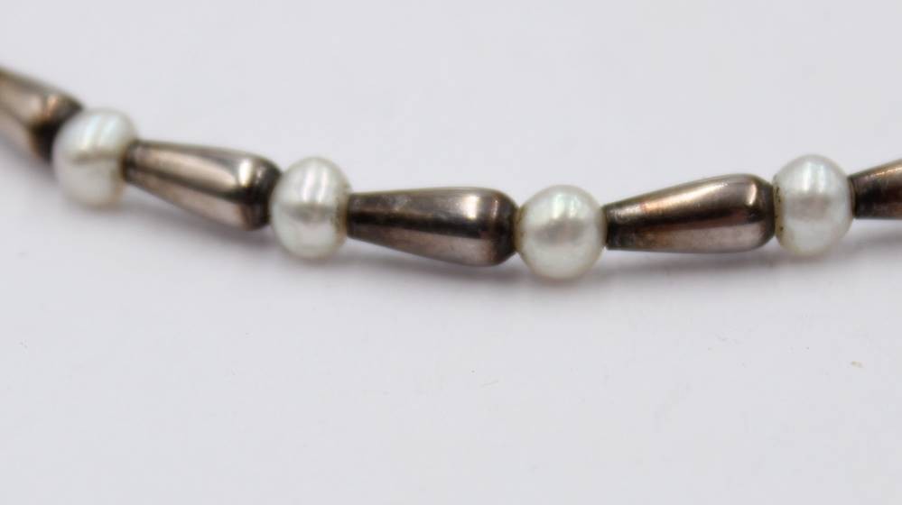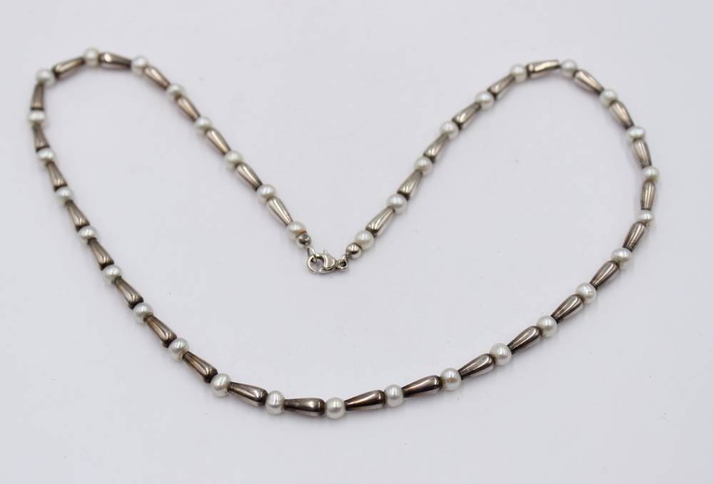 925er Silberkette mit kl. Perlen, zus. 10,1gr., L-42cm [1]