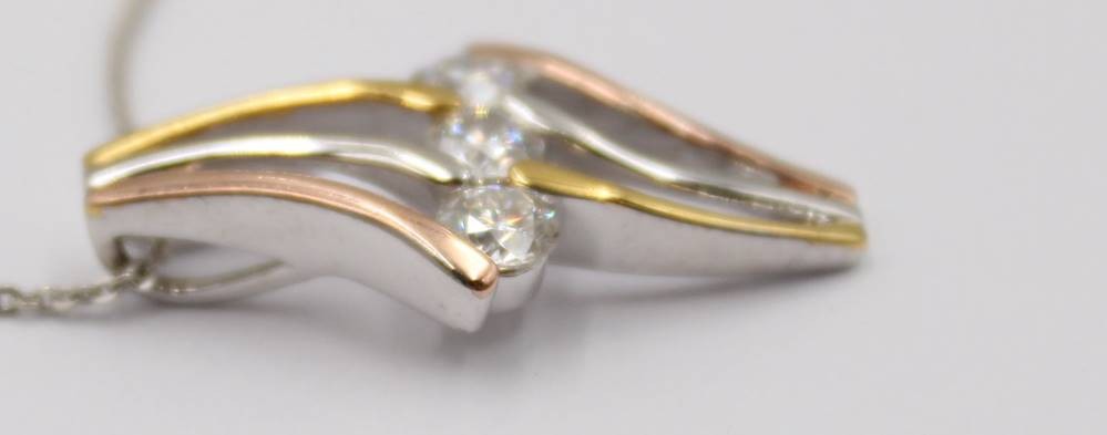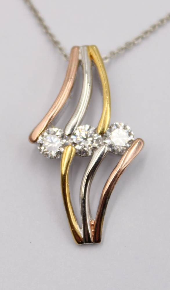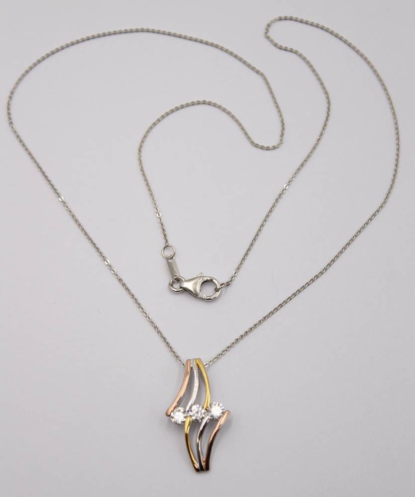 925er Silberkette mit tricolor Anhänger, klare Steine, 4,2gr., L-50cm Anh.-3cm [1]