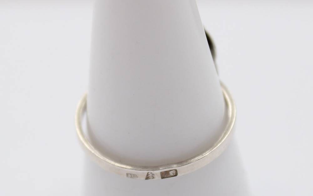 925er Silberring mit einem ovalen Bernstein, schwarze Stellen, 4,5 gr. RG 58 [1]