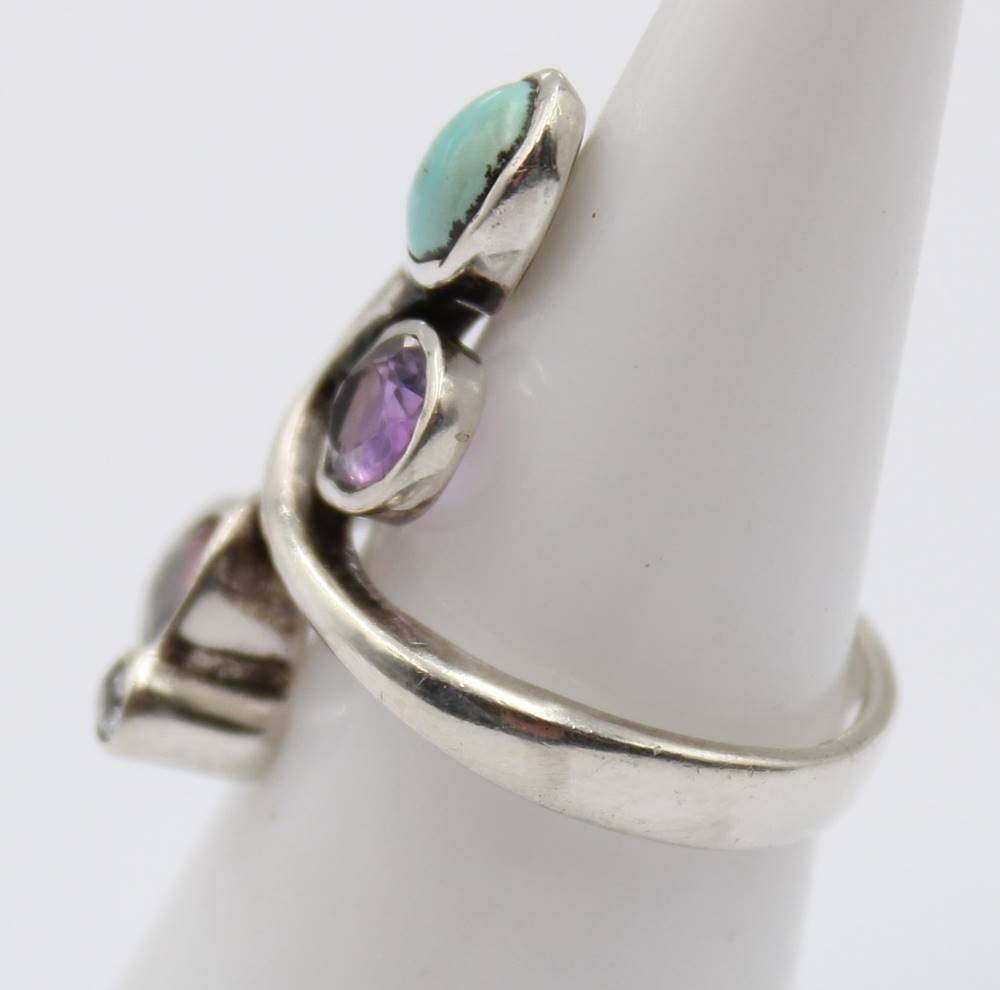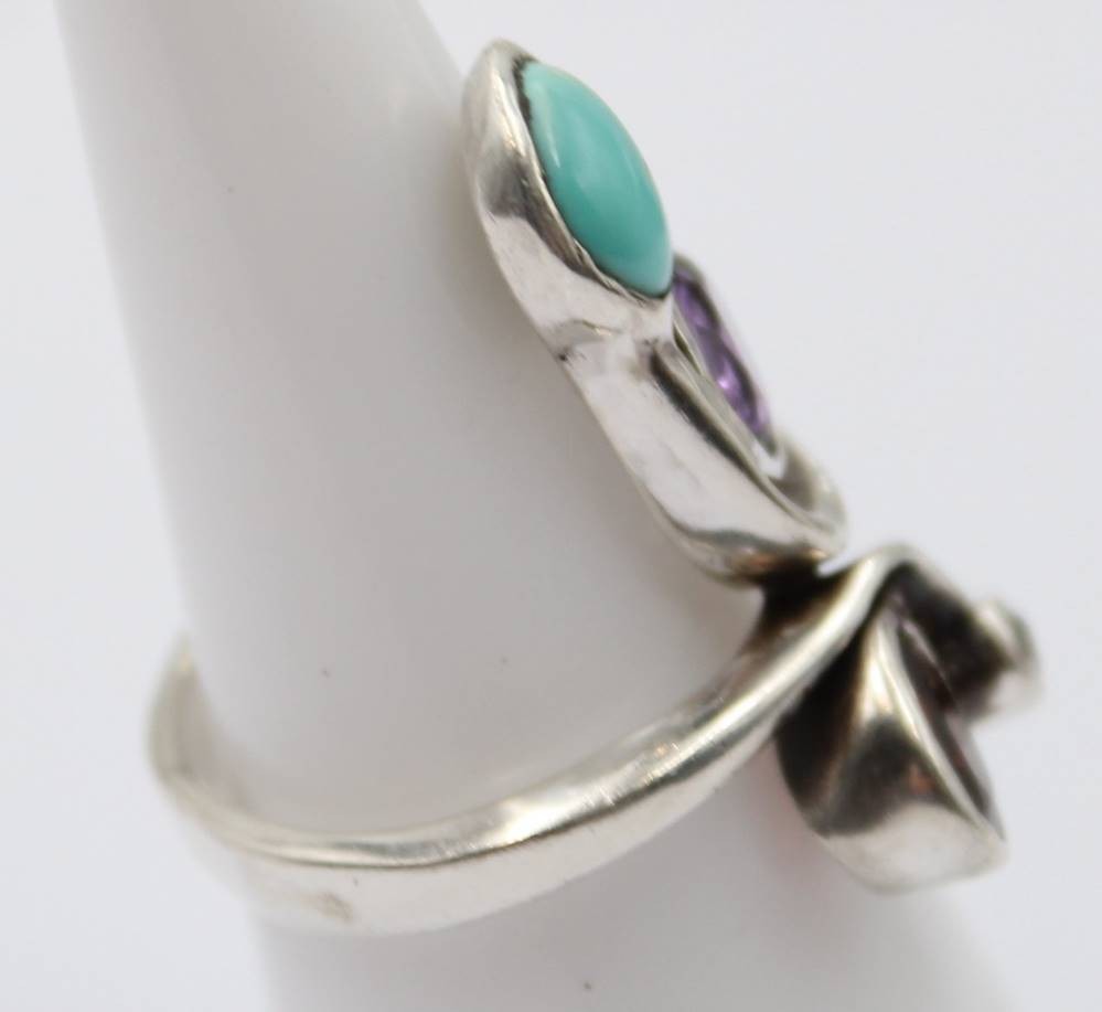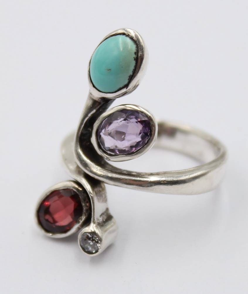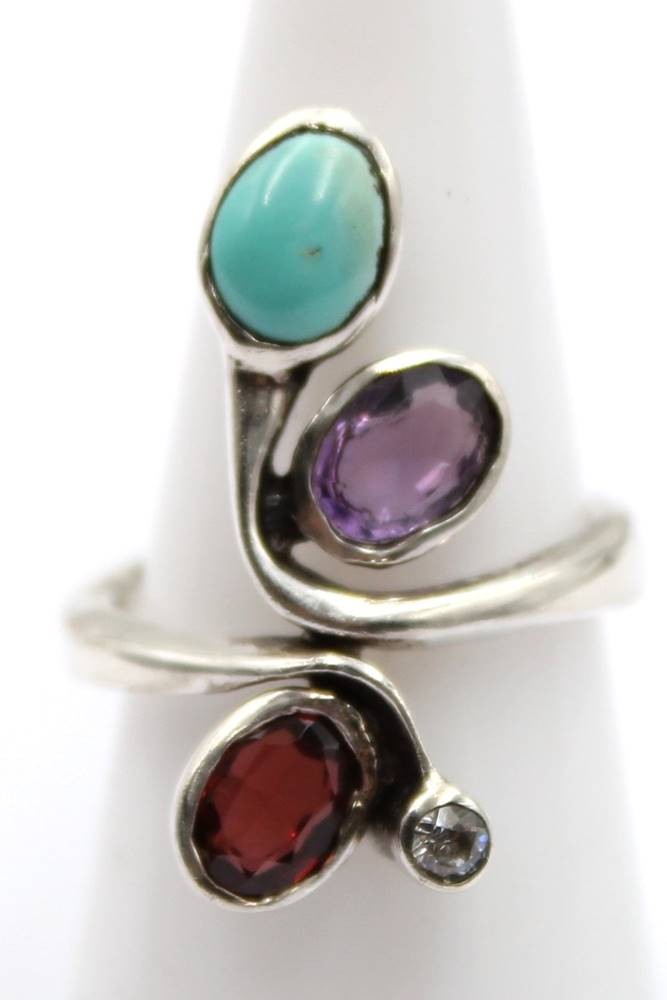 925er Silberring mit Türkis,Granat, Amethyst, 5,8 gr. RG 53 [1]