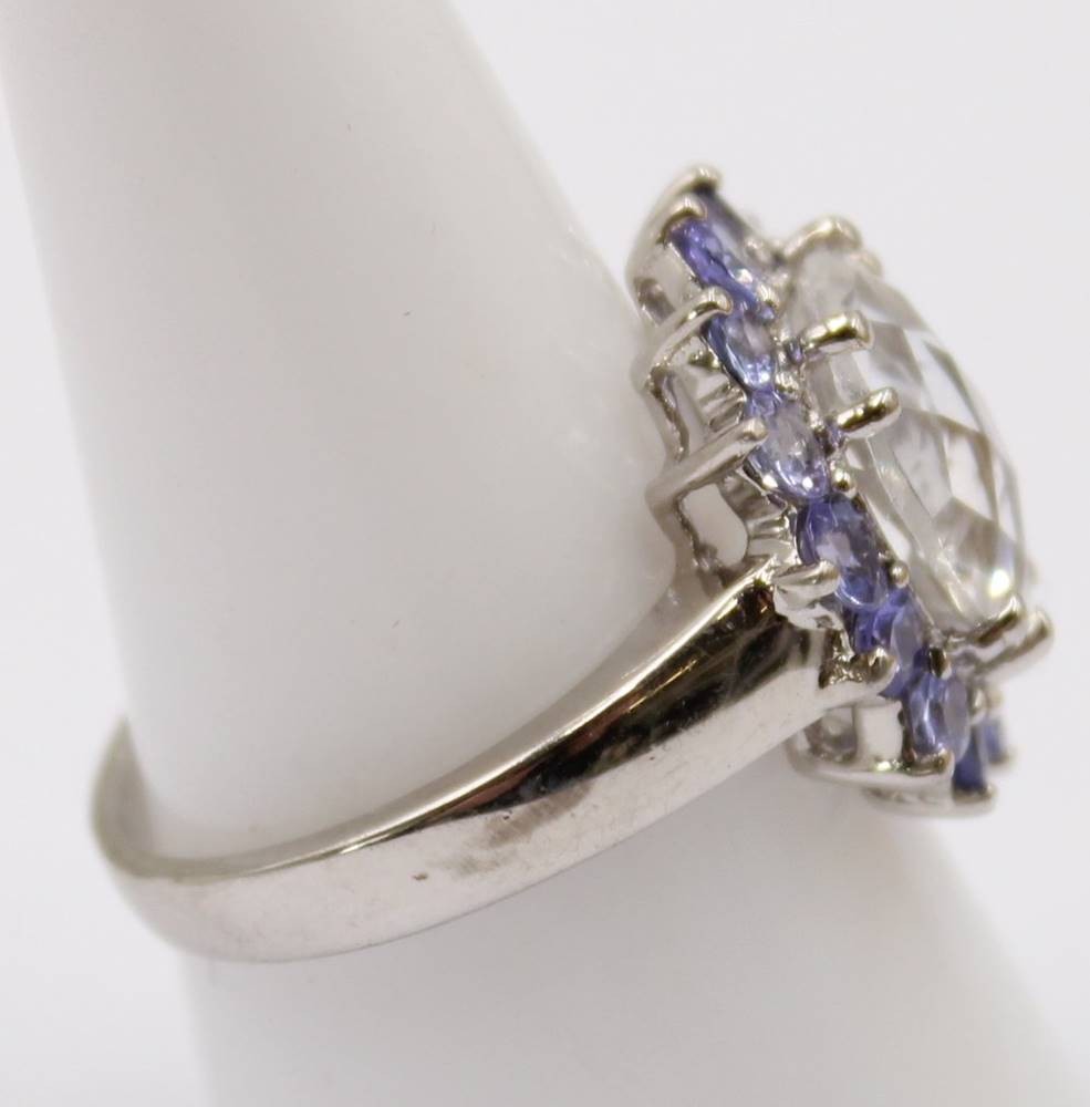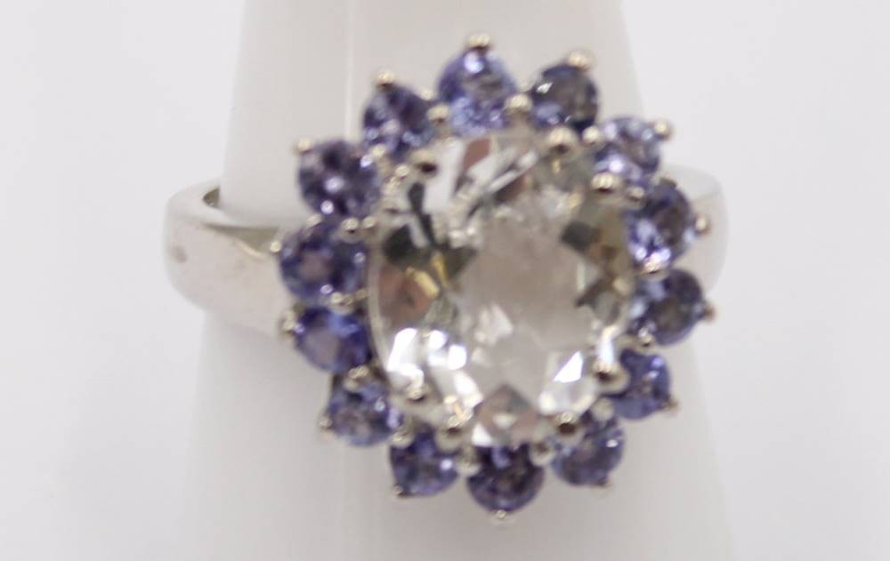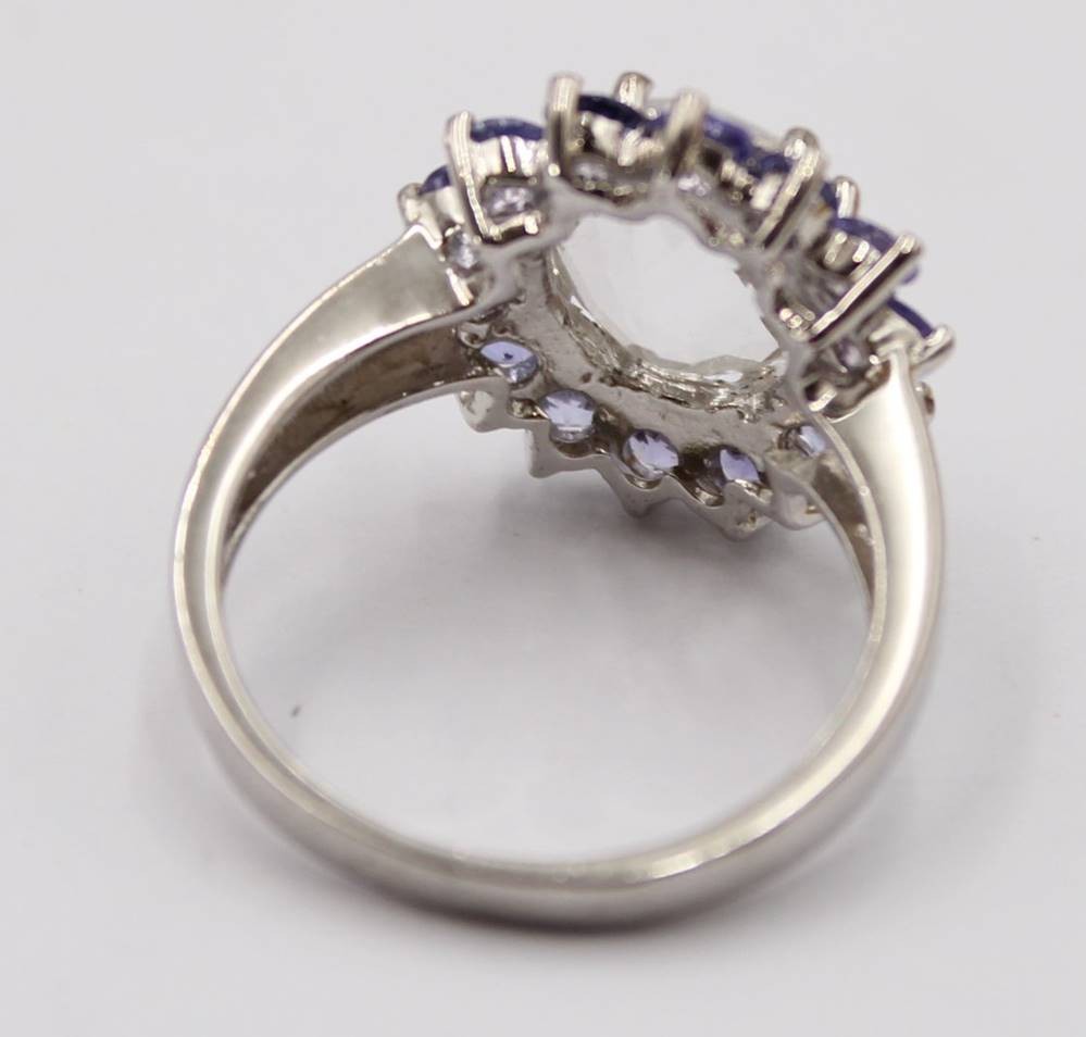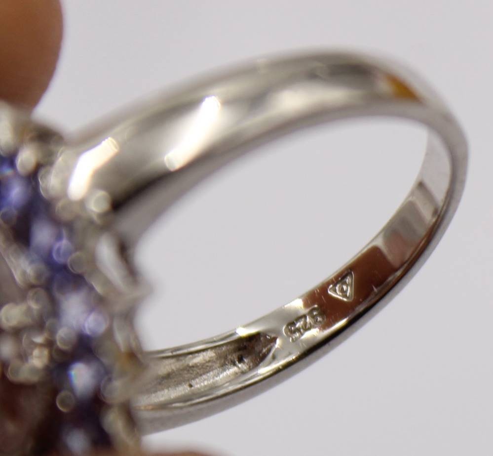 925er Silberring mit vioeltten Steinen und einem hellgrünen mittig besetzten Stein, RG. 59, 5,6 Gramm [1]