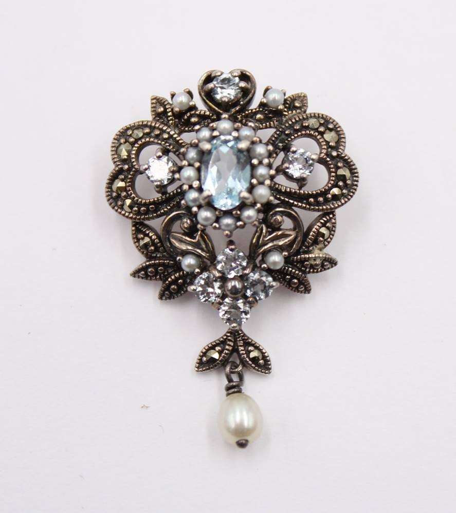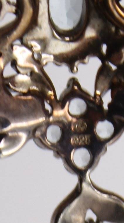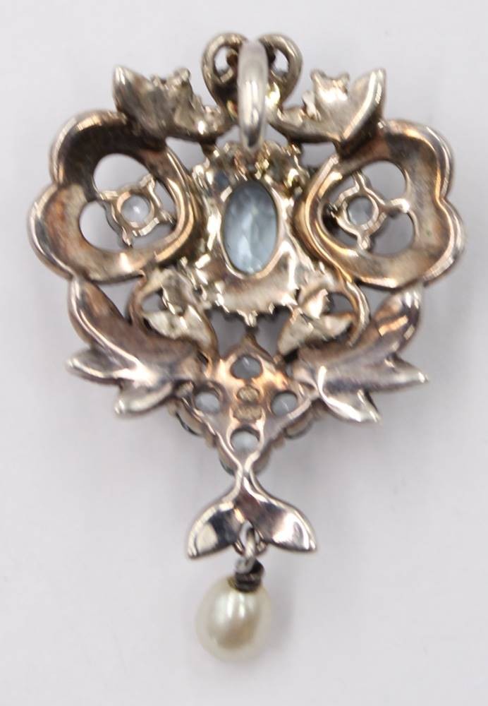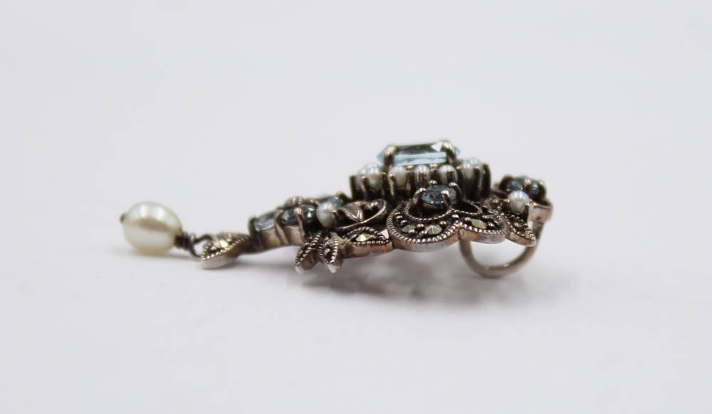 935er Kettenflyer, klare und blauer Stein, ca. 3,3cm, 4,1gr.