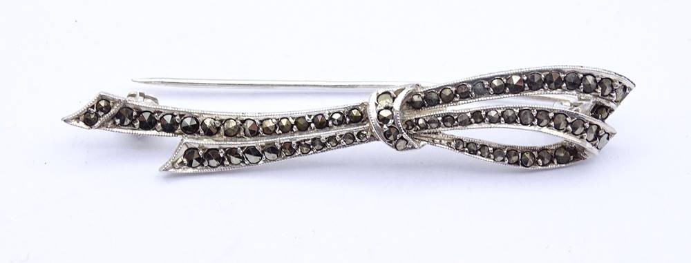 935er Silber Brosche mit Markasiten, L. 5,7cm, 4,7g. [1]