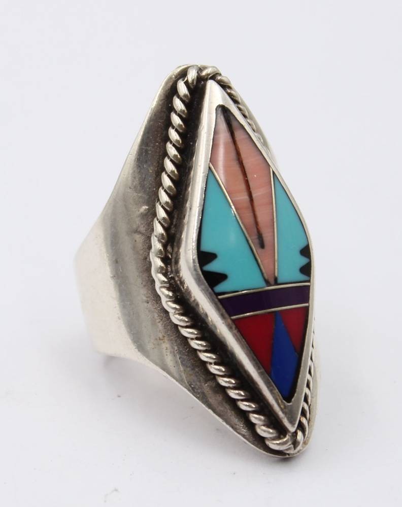 9925er Silber-Ring, wohl Mexiko, schöne Steineinlagen, 15,1gr., RG 54 [1]