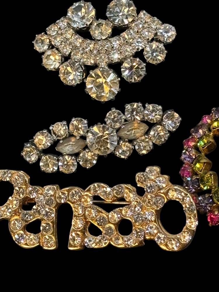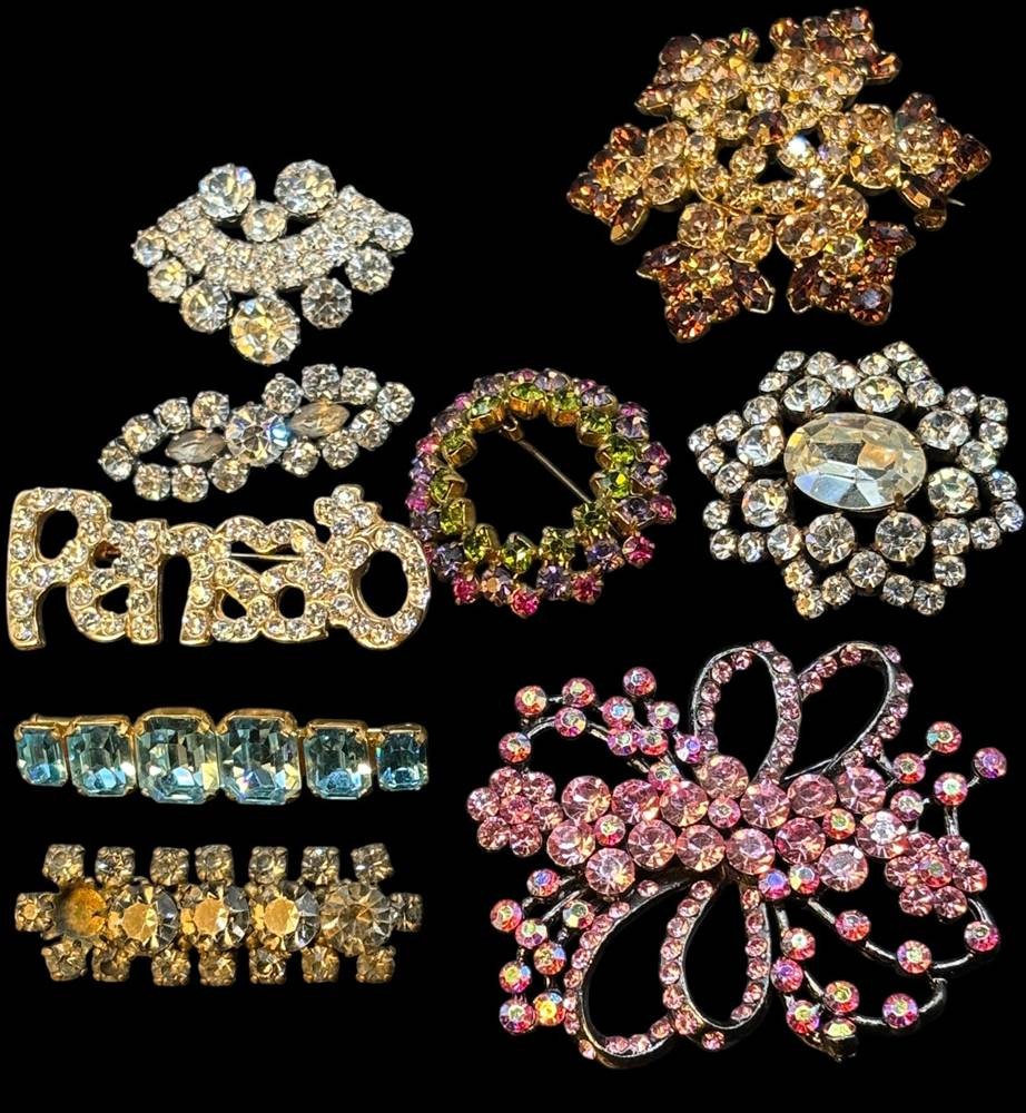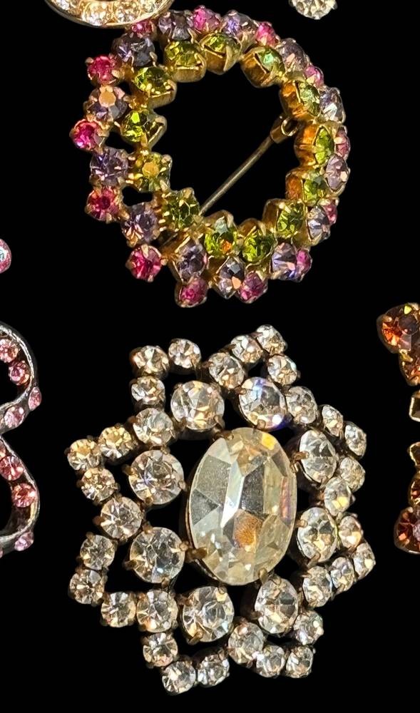 9x div. Strass-Broschen und Nadeln, grösste 7x5,5 cm, 1x fehlt ein Stein [1]
