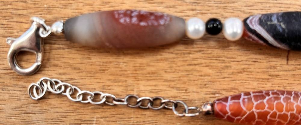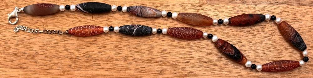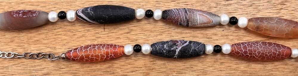 Achatkette mit SW Perlen, Silbermontur-925-, L-ca. 53 cm, ca. 49 gr. [1]
