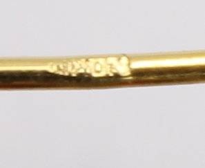 ältere Granat-Brosche, vergoldet, undeutl. gemarkt, L-6cm [1]