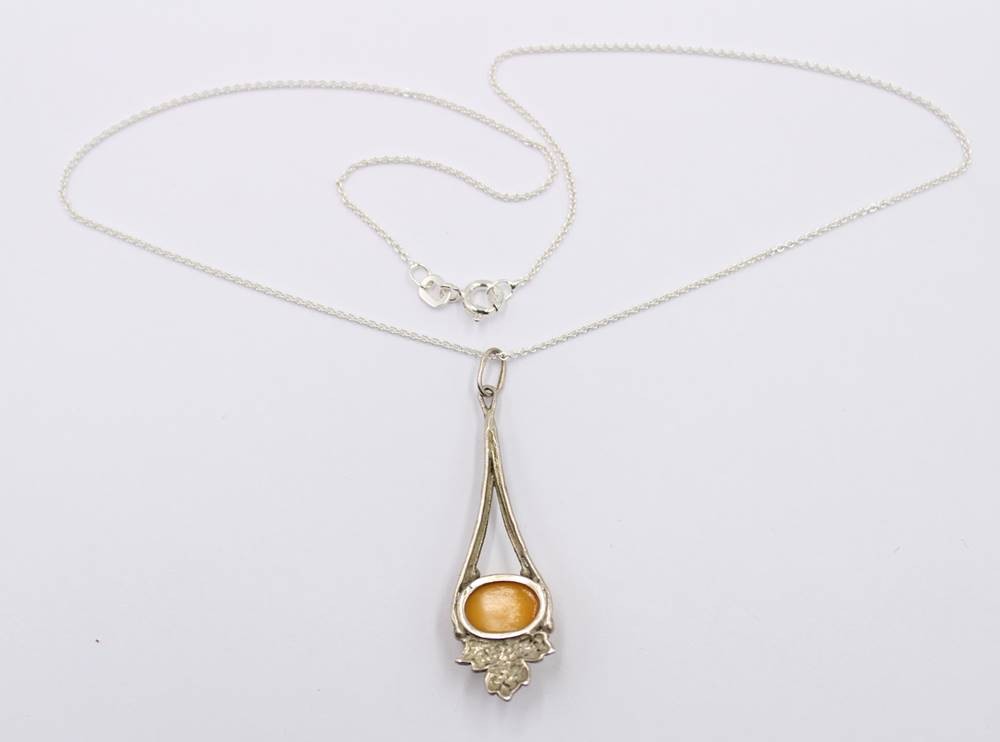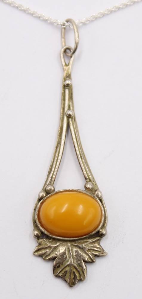 älterer Silberanhänger mit Bernstein-Cabochon, an 925er Kette, zus. 3,2gr. , L-37cm, Anh. L-4,7cm [1]