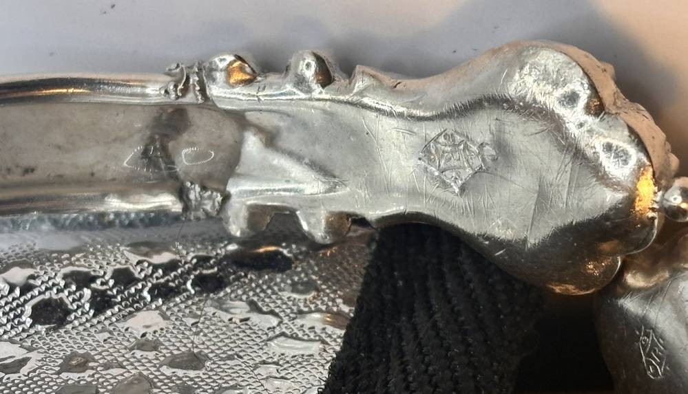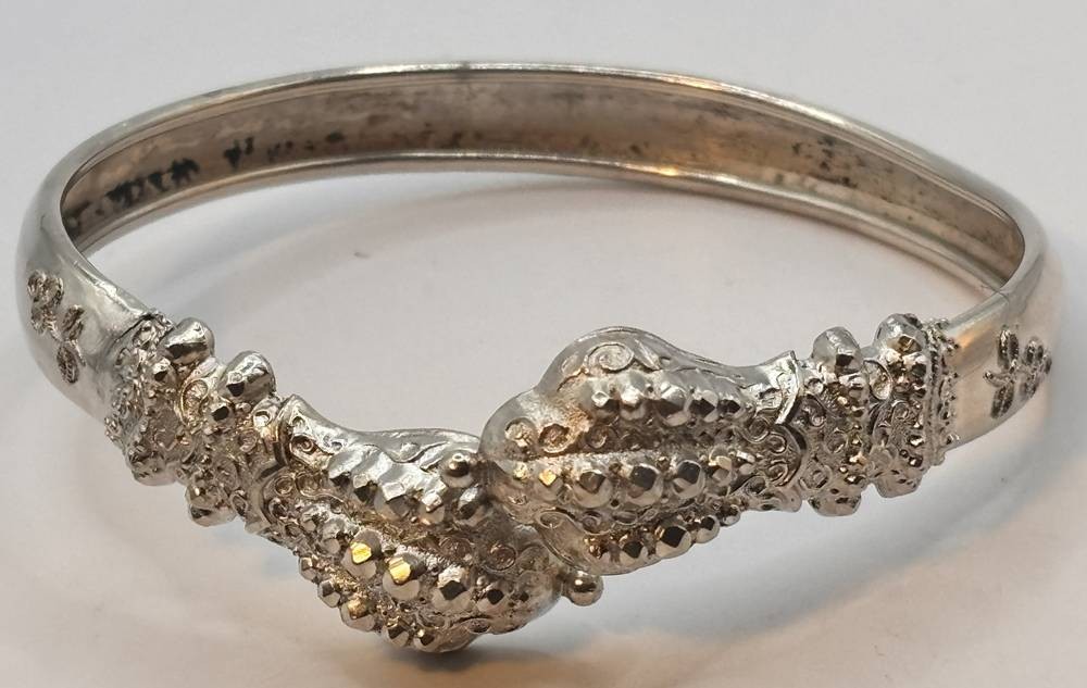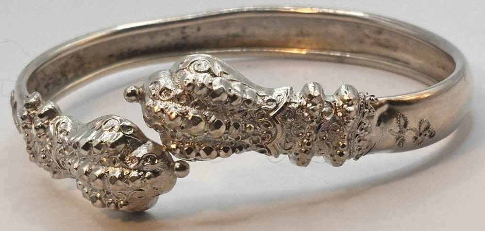 alte Silber-Armspange, Schlangenköpfe, ungedeutete Punzen, 15,4 gr. [1]