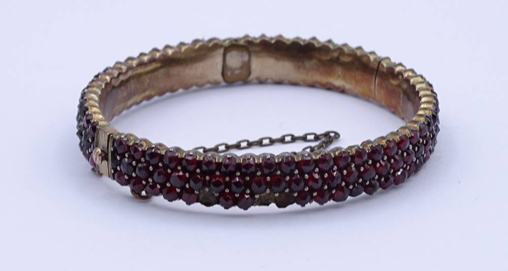 Alter Granat Armreif, Tombak, 5 Steine fehlen, 6x6cm [1]