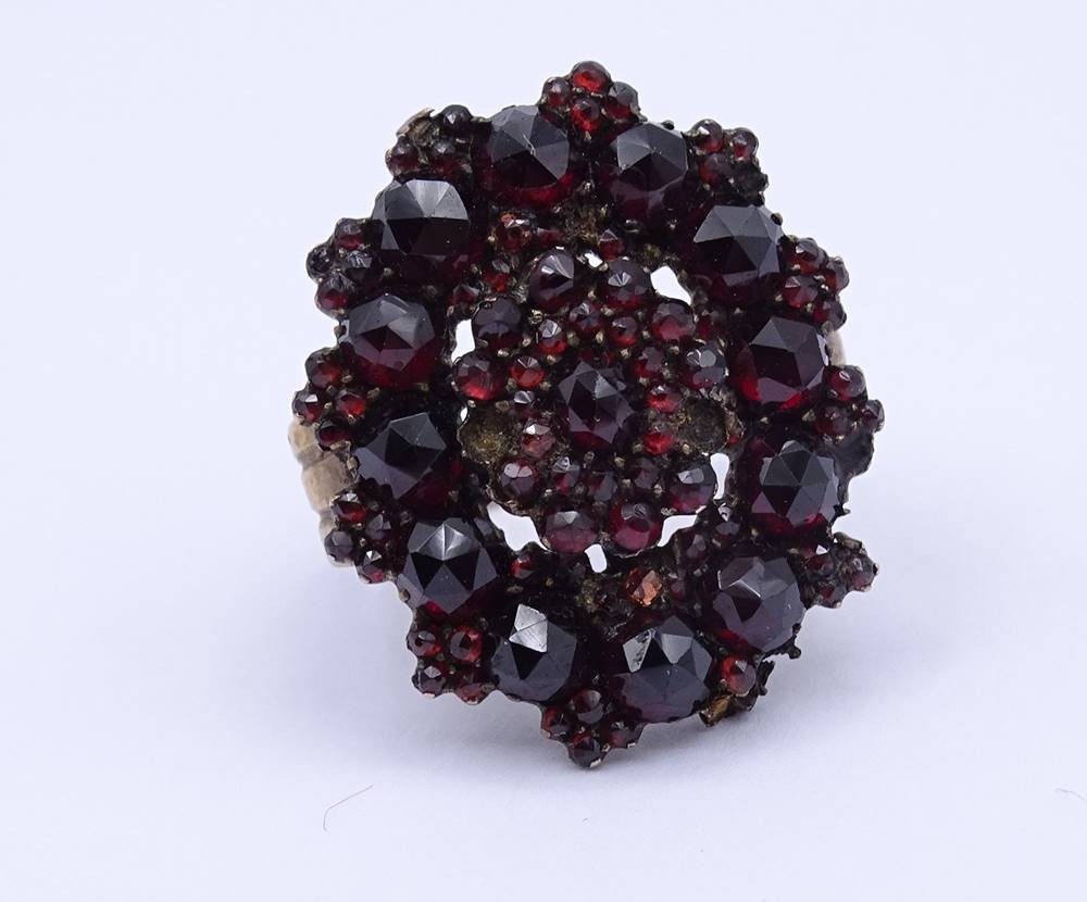 Alter Granat Goldring 333/000, Böhmen um 1890, einige Steine fehlen, 5,3g., RG 51 [1]