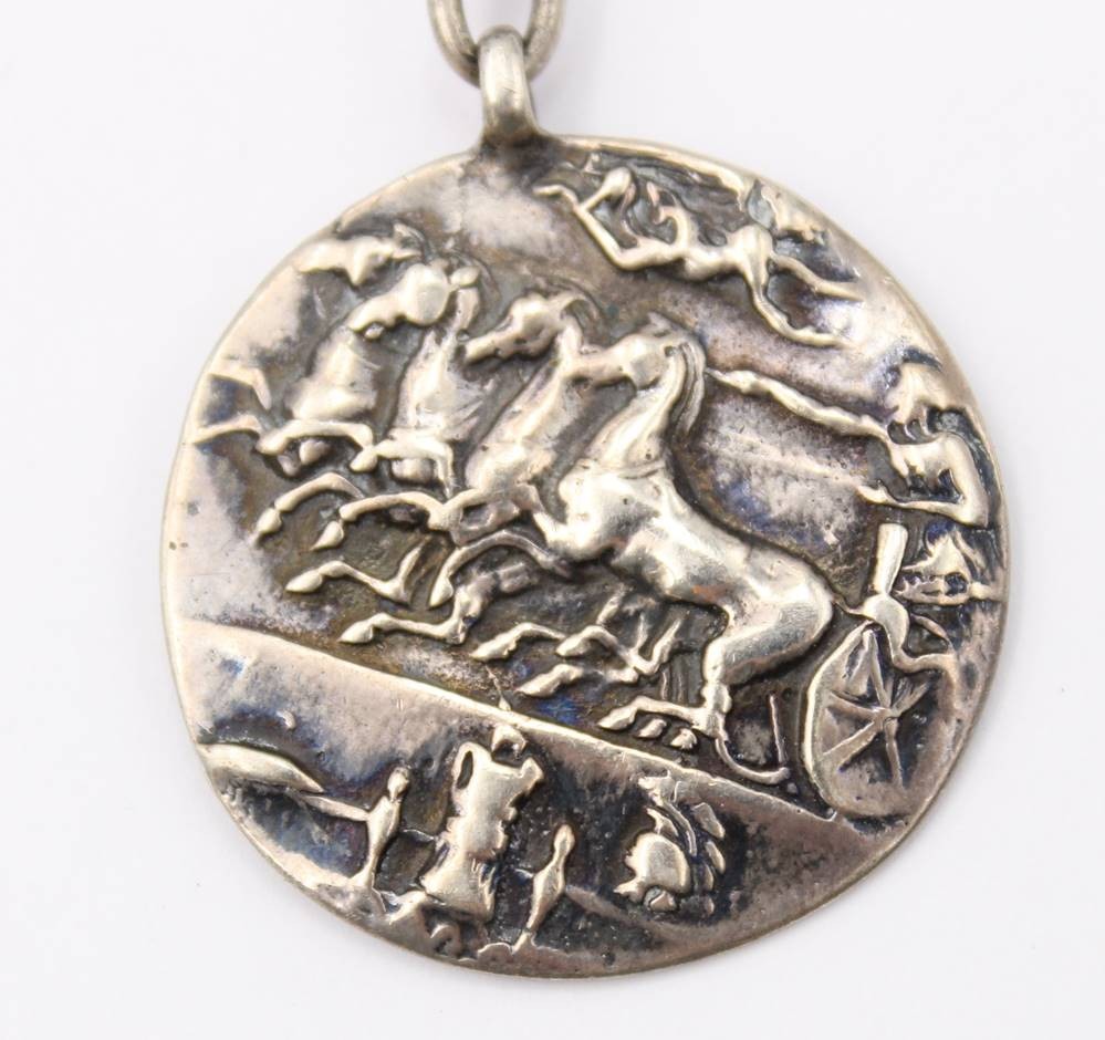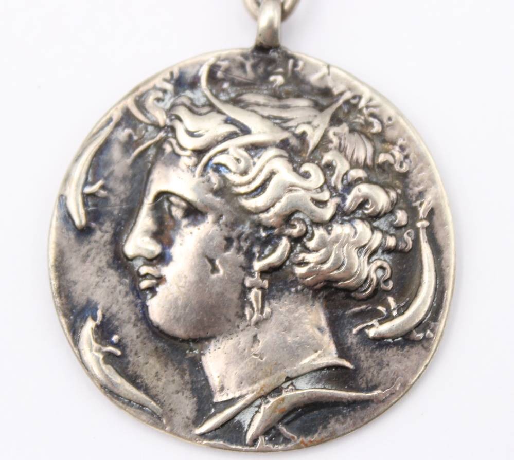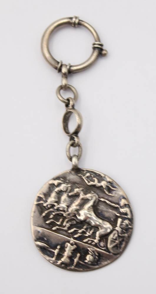 alter Schlüsselanhänger oder Chatelaine, Medaille mit altrömischen Motiven, Silber gepr., 21,1gr., L-9cm [1]