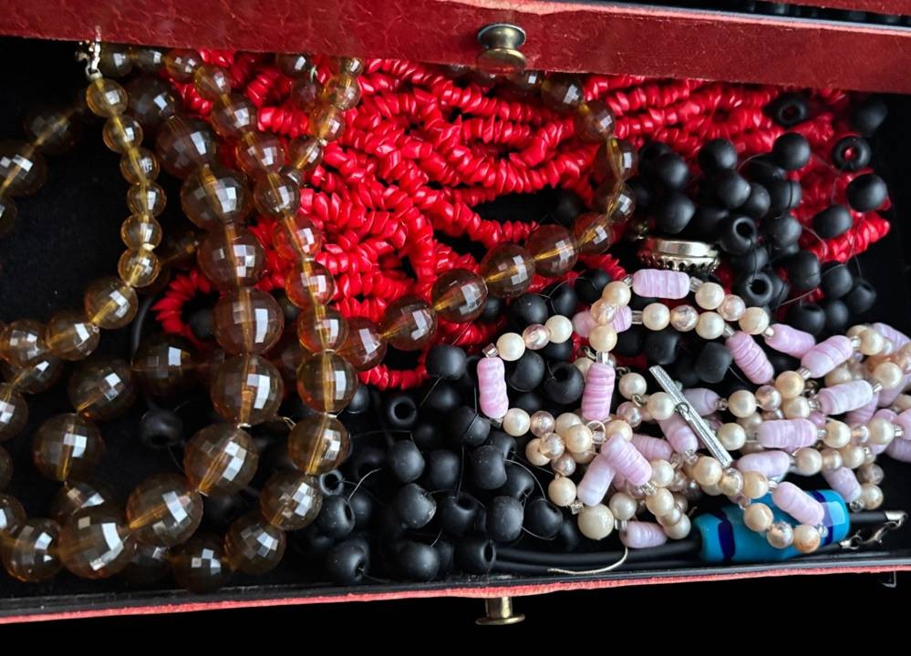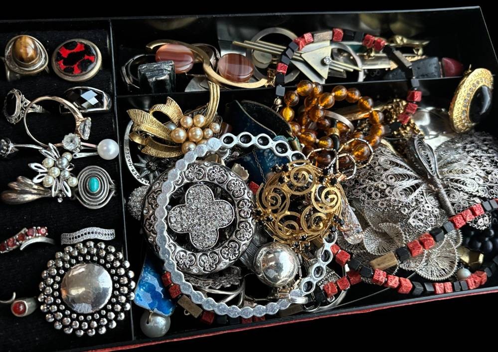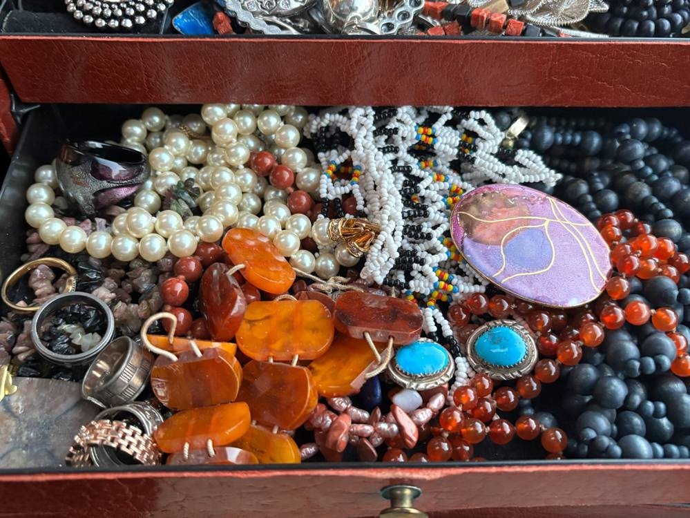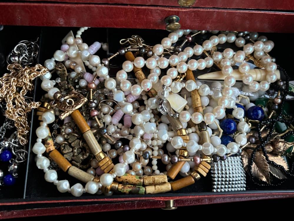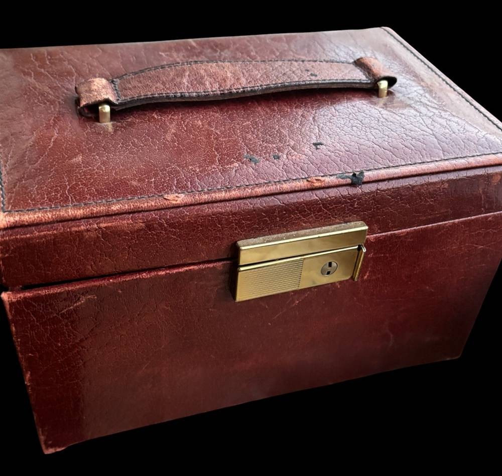 alter Schmuckkoffer voller Modeschmuck, H-13 cm, 25x15 cm [1]