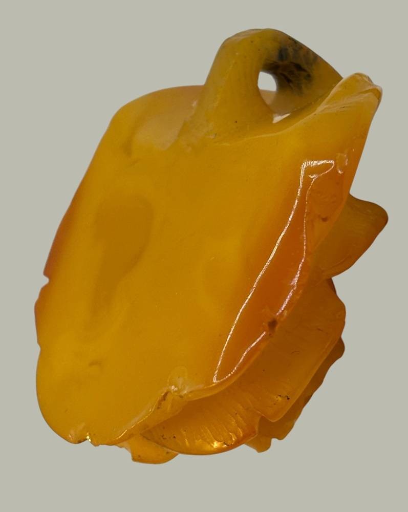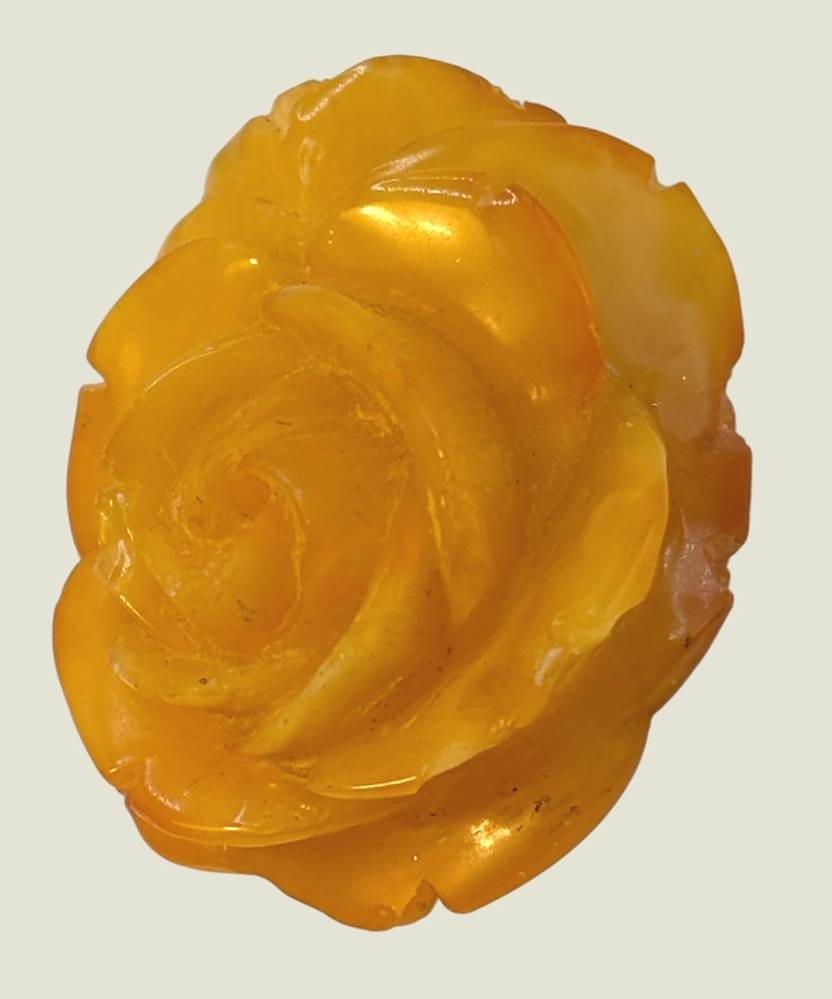 Anhänger, aus Bernstein geschnitzte Rosenblüte, 7 gr., 3,5x3 cm [1]