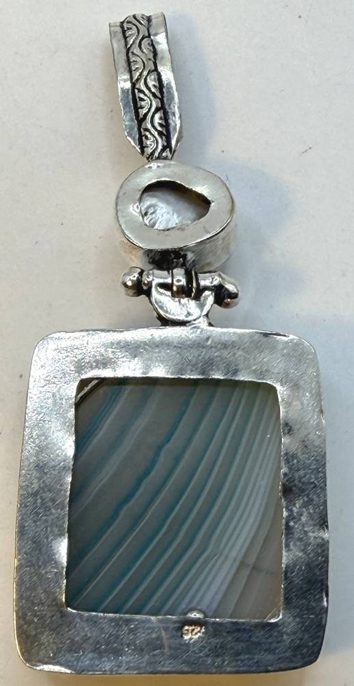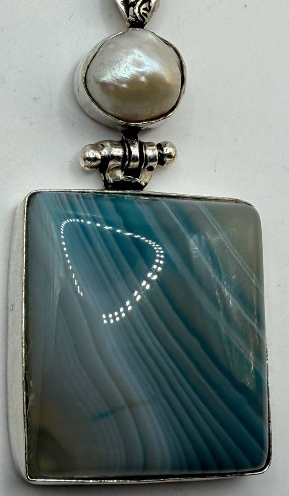 Anhänger aus Sterlingsilber -925-mit Blue Lace Achat und Barockperle, H-6,5 cm, Stein 2,5x3 cm, 16,4 gr. [1]