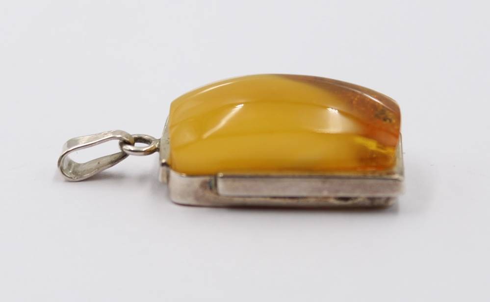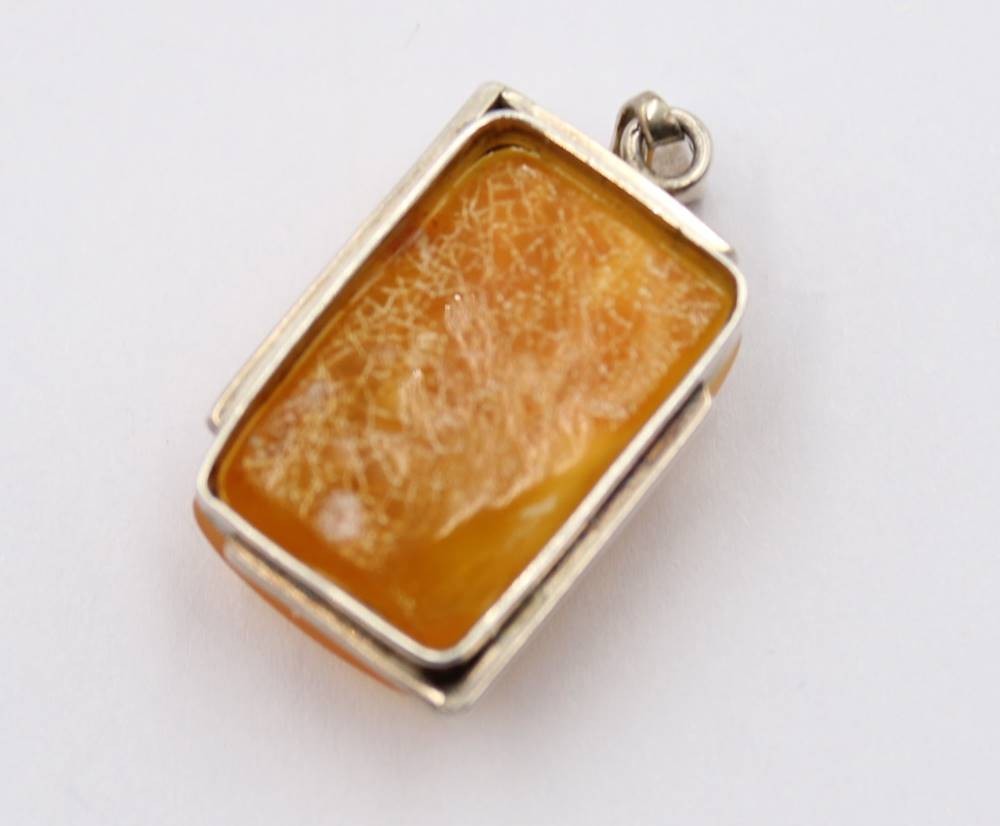 Anhänger, Bernstein in Silberfassung, 5,9gr., L-3,5cm [1]
