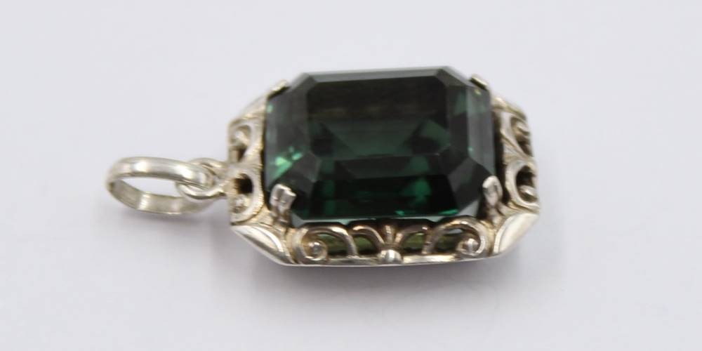 Anhänger mit einem Turmalin ? , Silber getestet, L- 2,5cm 3 gr. [1]
