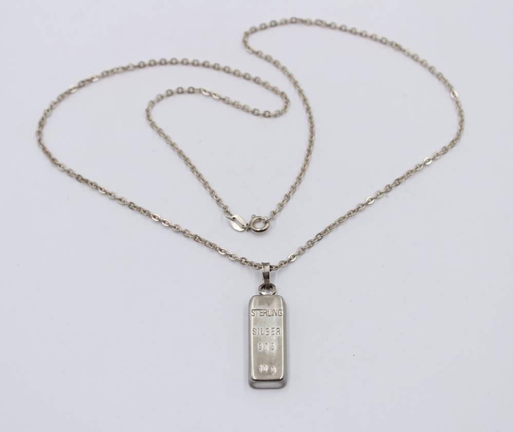 Anhänger Sterling Barren an 925er Kette , zus. ca. 13gr., ca. L-49cm Anh. L-3,5cm [1]
