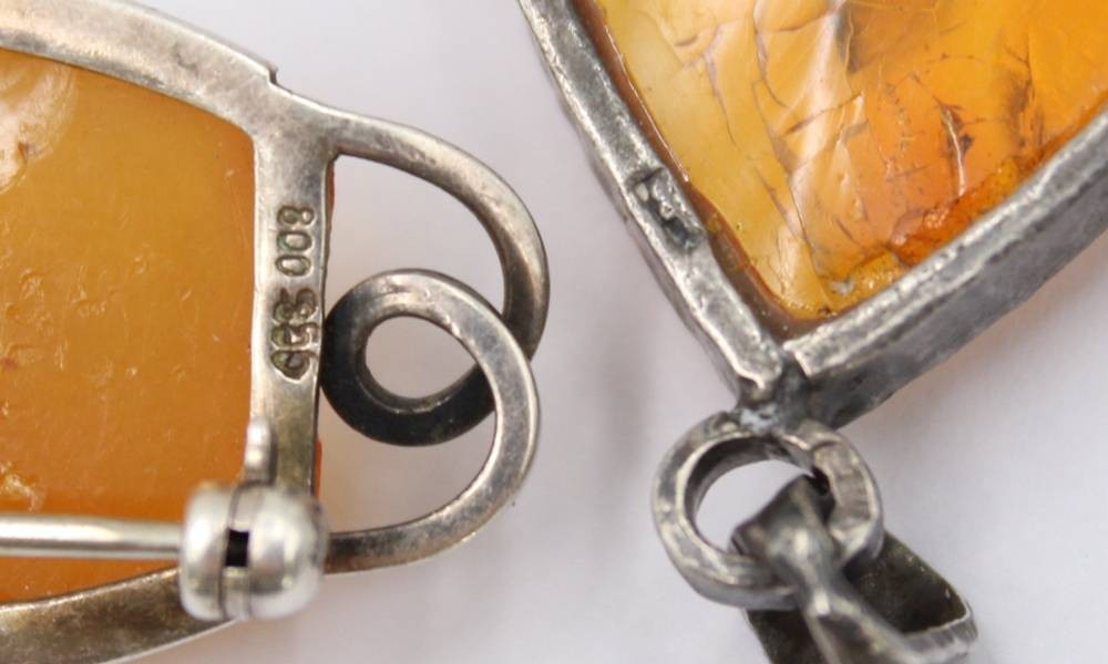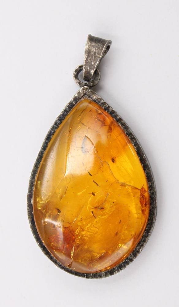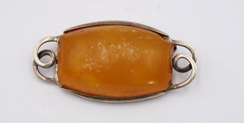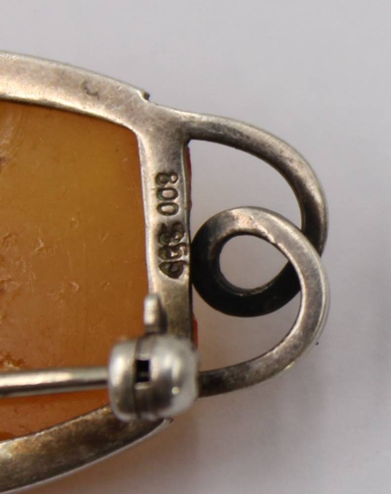 Anhänger und Brosche, Bersntein, je in 800er Silberfassungen, älter, zus. ca. 15,5gr., Anh. L-5cm [1]