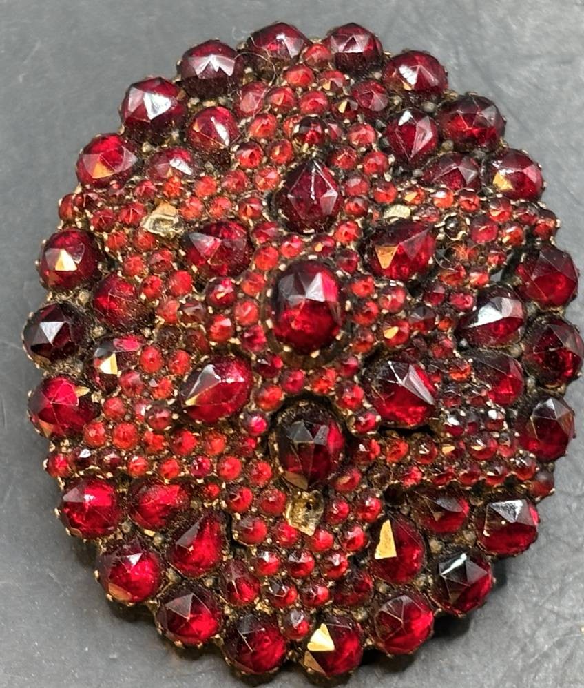 antike böhmische Granat-Brosche bzw. Anhänger, Tombak, einige Steine fehlen, ca. 3,5x3 cm [1]