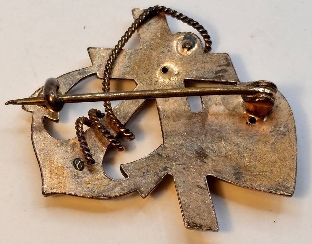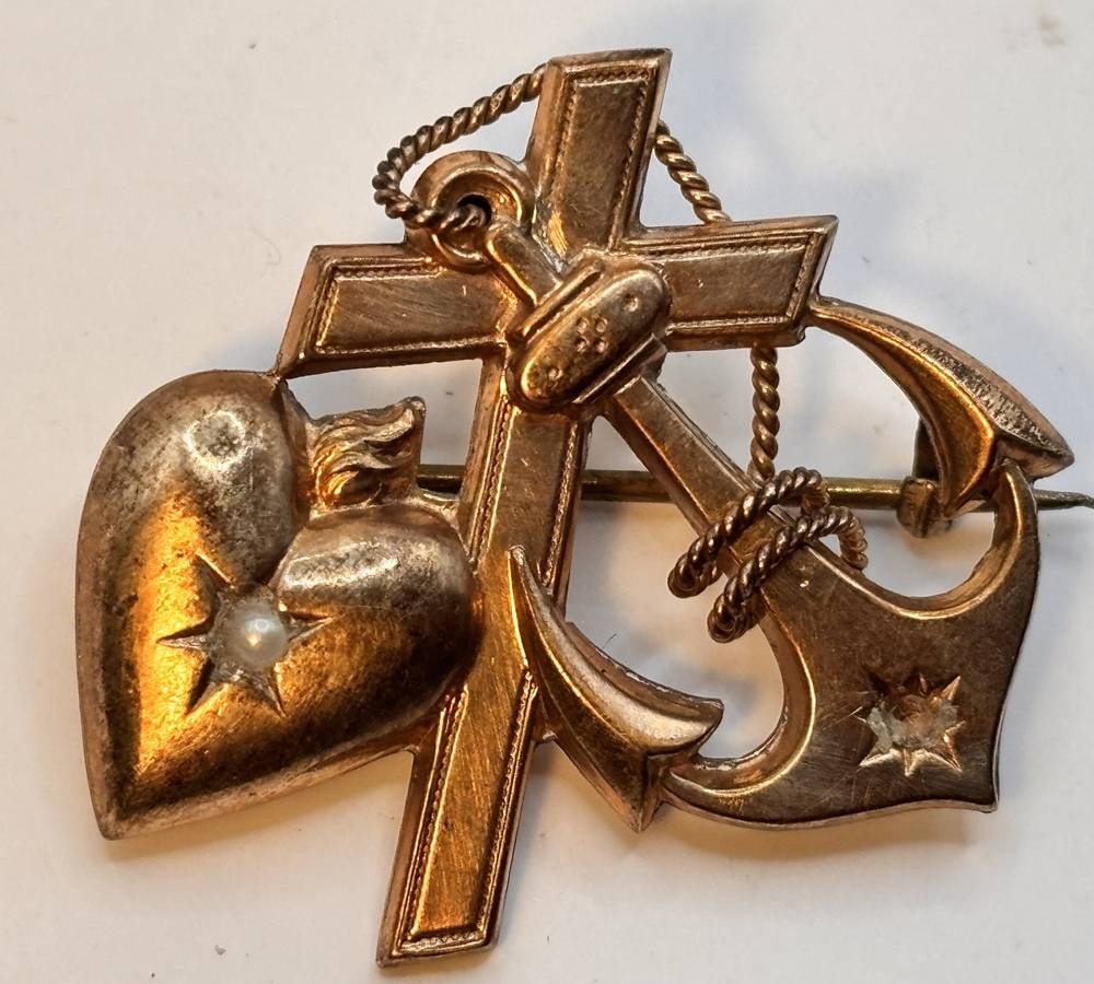 antike Double-Brosche "Glaube-Liebe-Hoffnung", kl. Perlchen oder Stein fehlt, 3x3 cm [1]