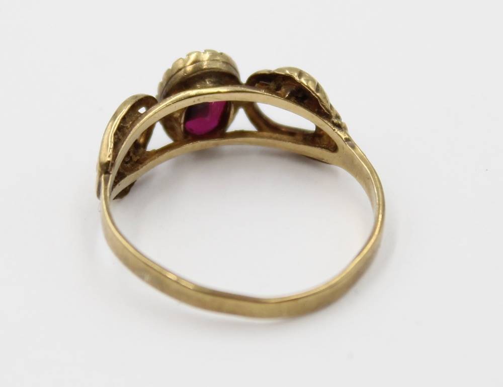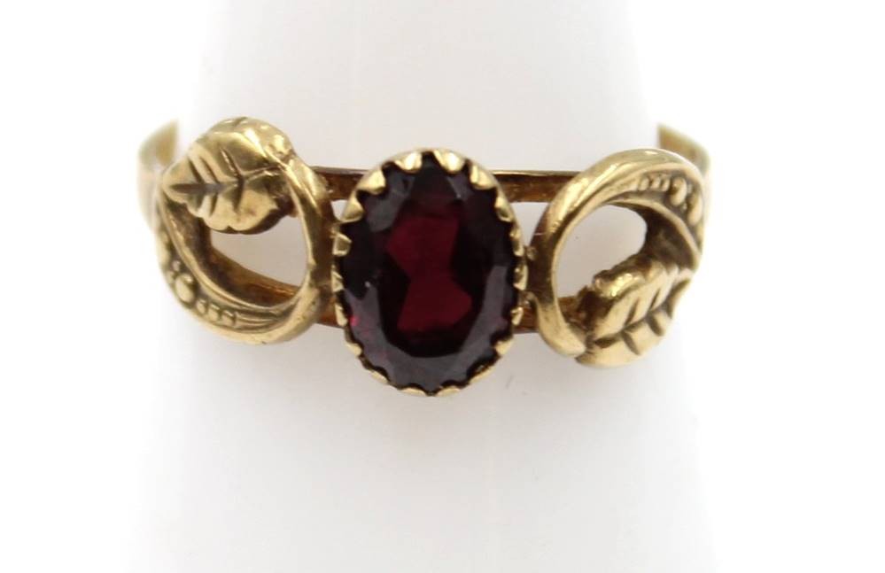 antiker 333er GG Ring, floral gearbeitet, Granat, zus. ca. 1,7gr., RG 52 [1]