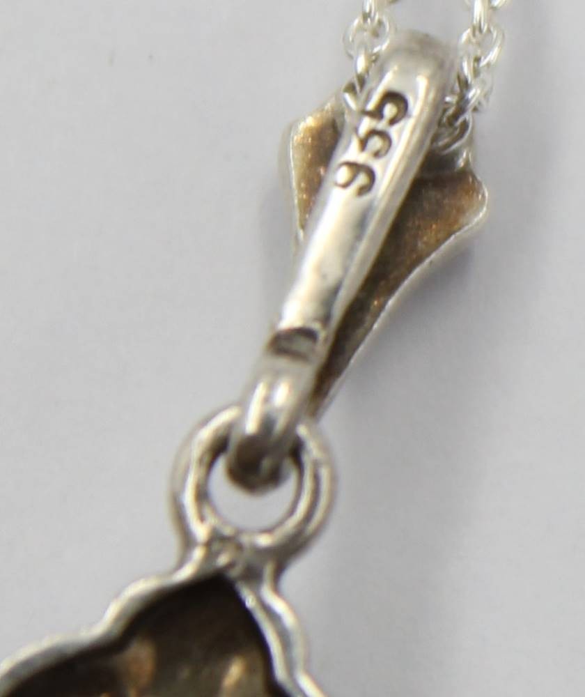 antiker 935er Silber-Anhänger mit blauem facett. Stein, an 925er Kette, zus. 4,9gr., L-38cm, Anh. 3,3cm [1]