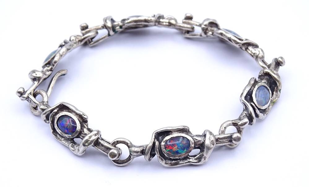 Armband mit 6 Opale, Silber 835/000, L. 19cm, 26g.