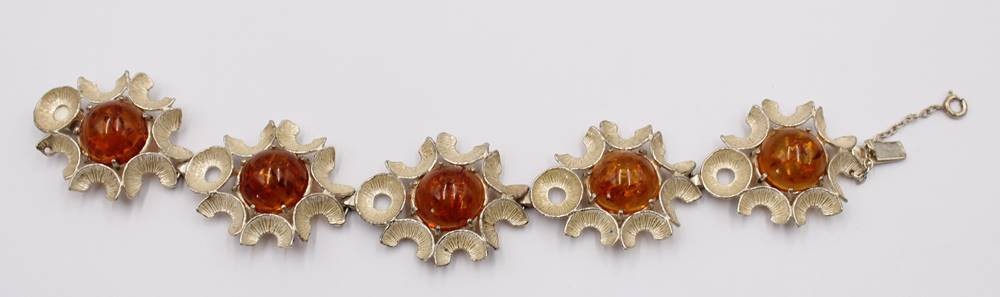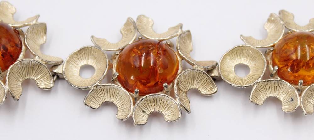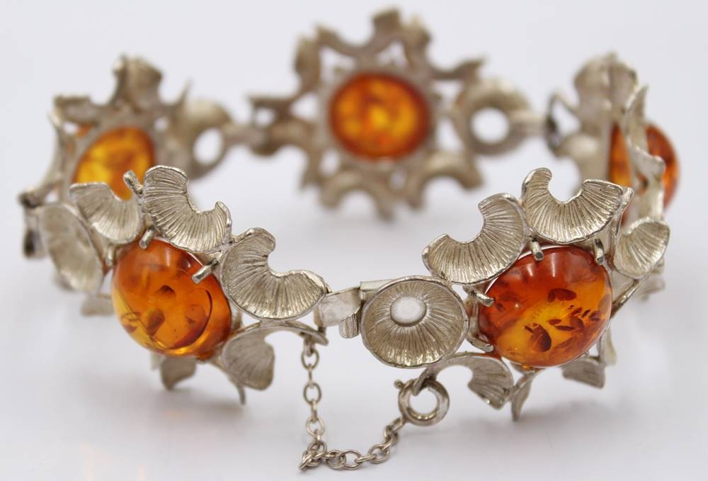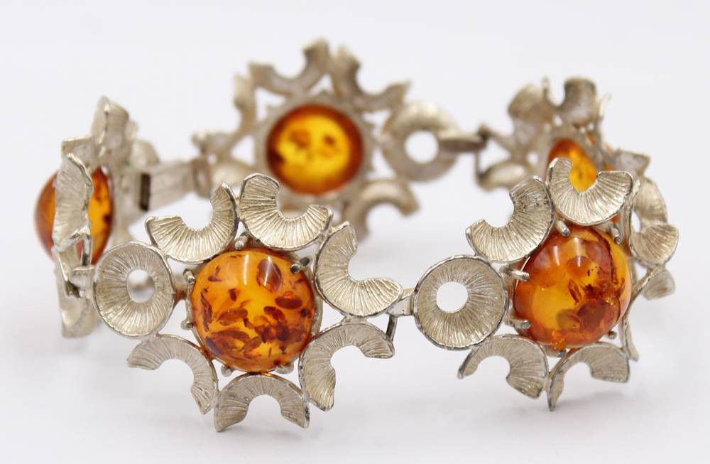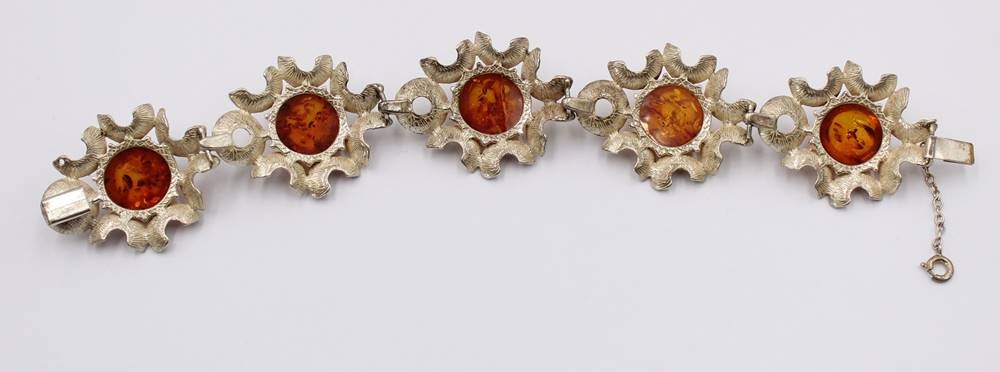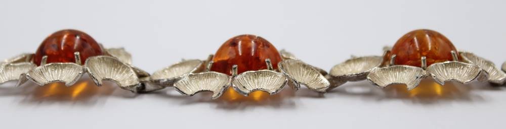 Armband mit Bernsteinen, 835er Silber,mittlerer Bernstein mit Riss, L. 19 cm, 39 Gramm [1]