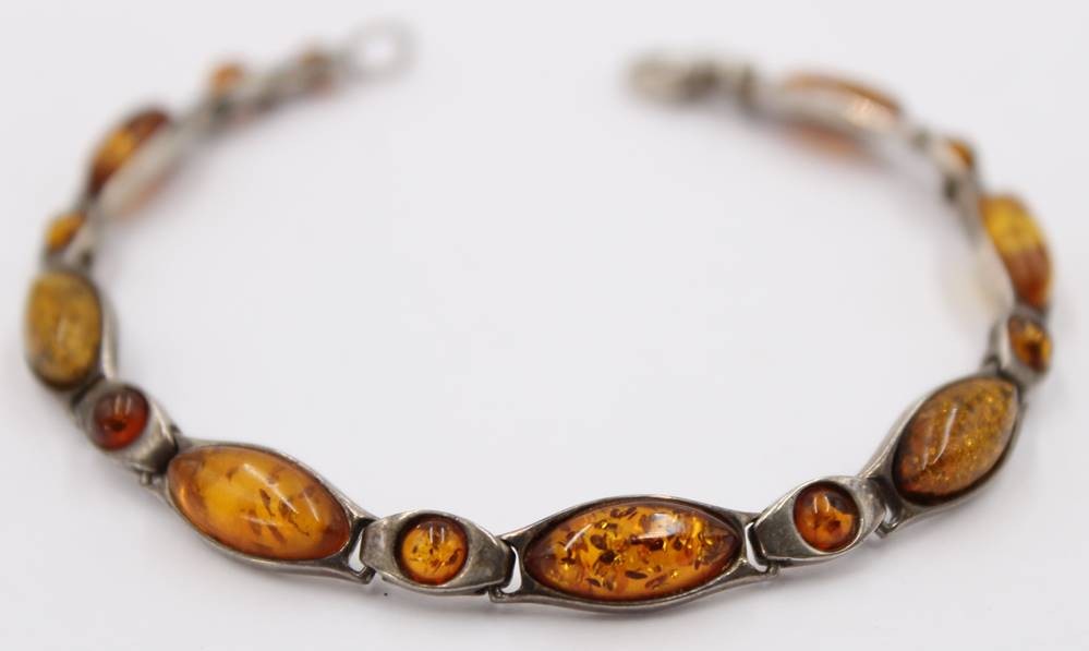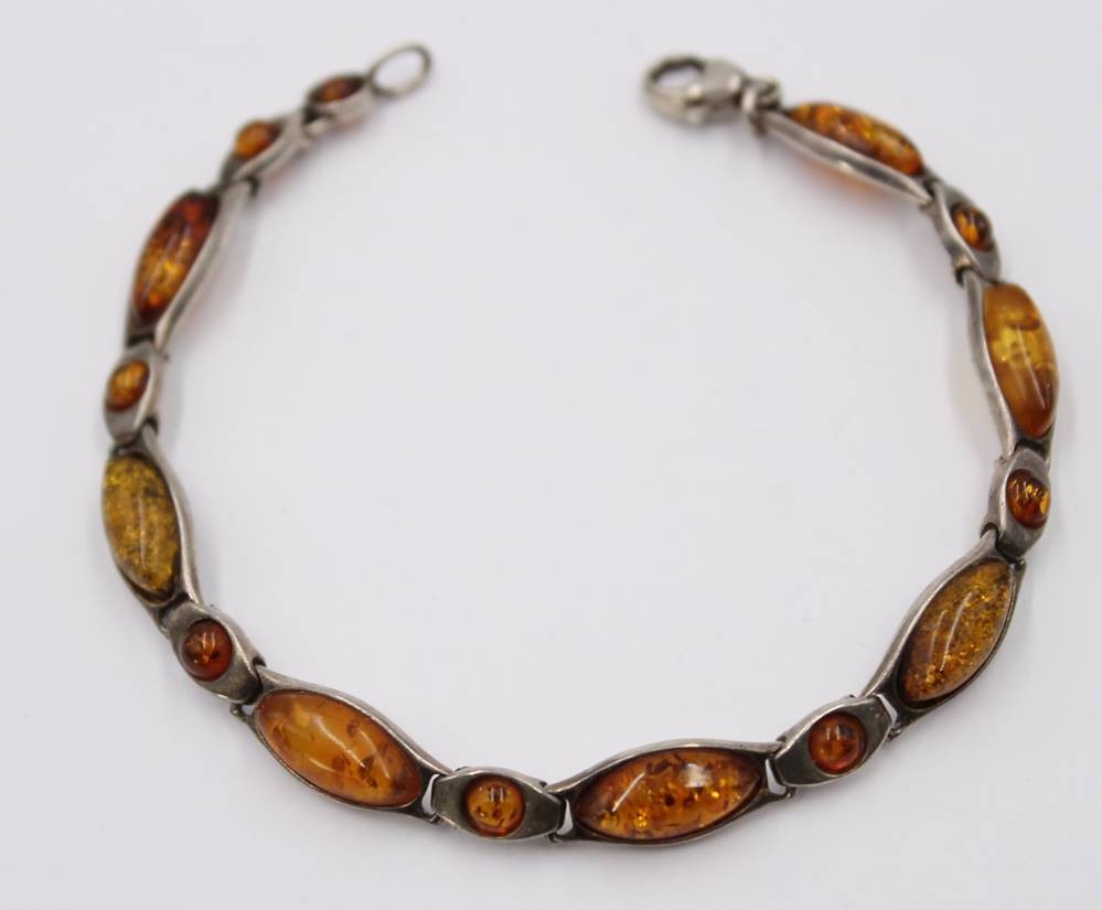Armband mit Bernsteinen, Silber (gepr.), 9,4gr., L-19cm [1]