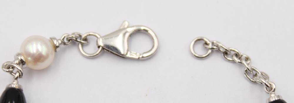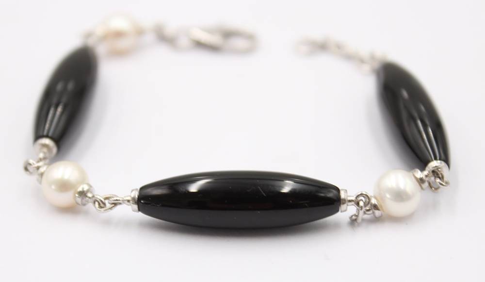 Armband, Onyx u. Muschelkernperlen, Silberschließe, L-17cm [1]