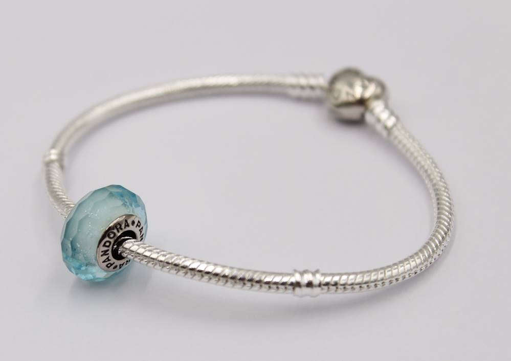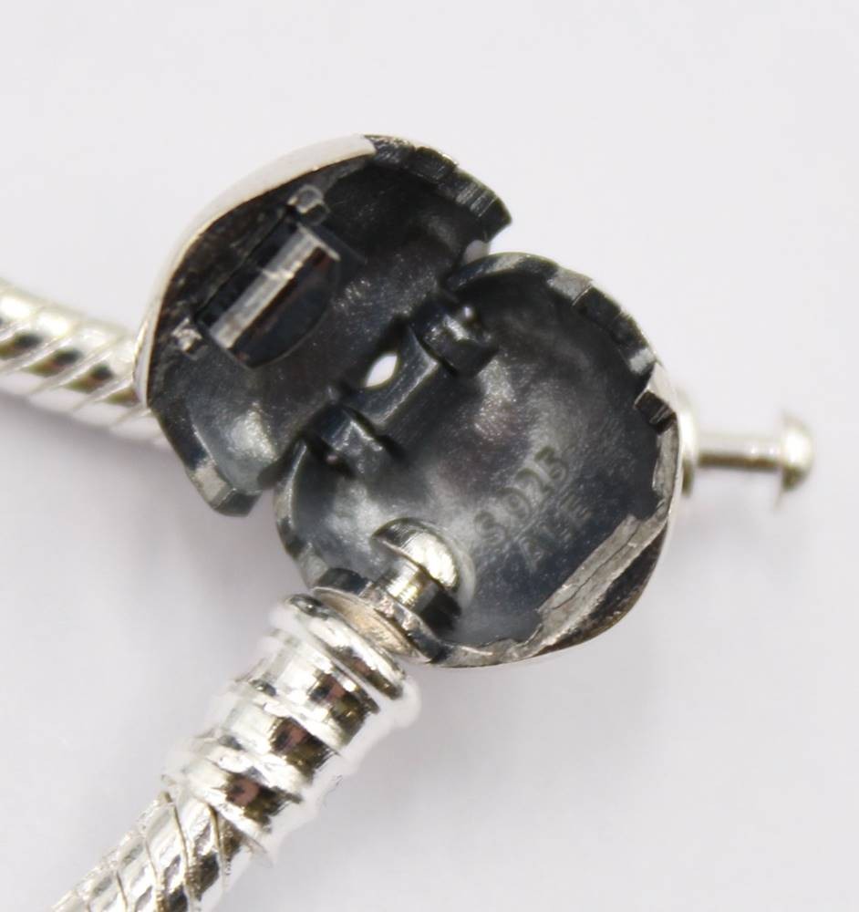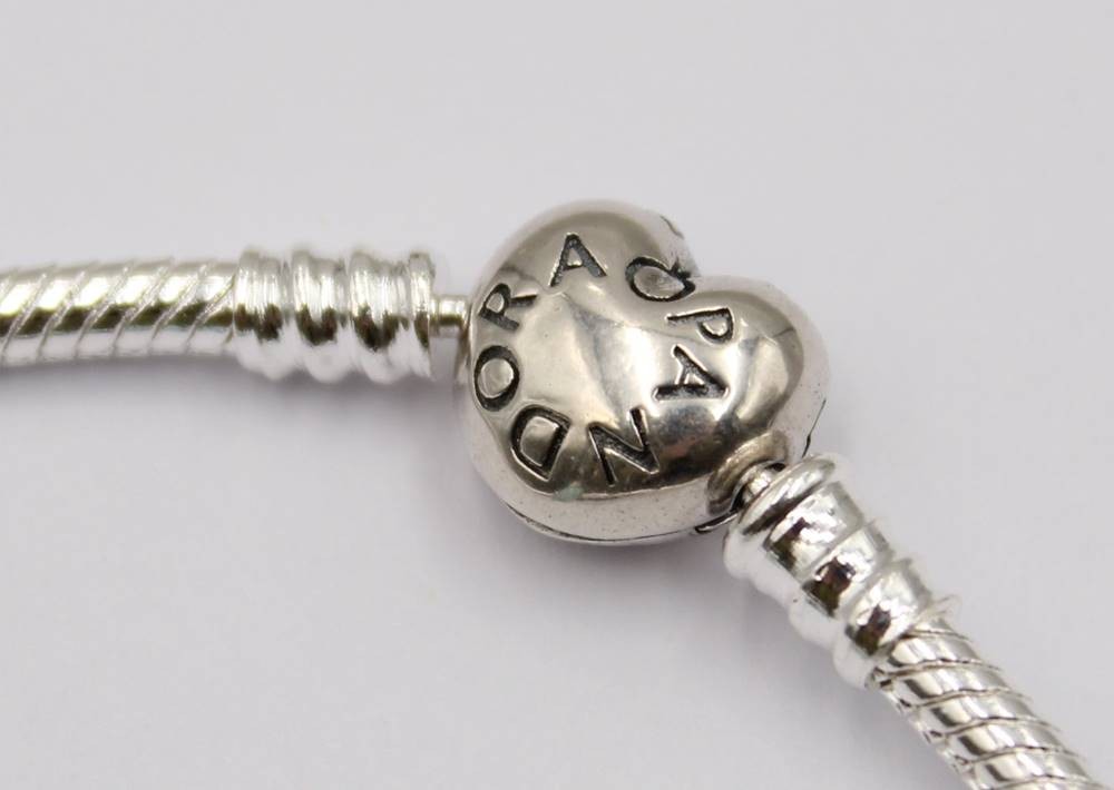 Armband, Pandora Silberschließe und Pandora Charm, Band kein Silber, ca. L-19cm [1]
