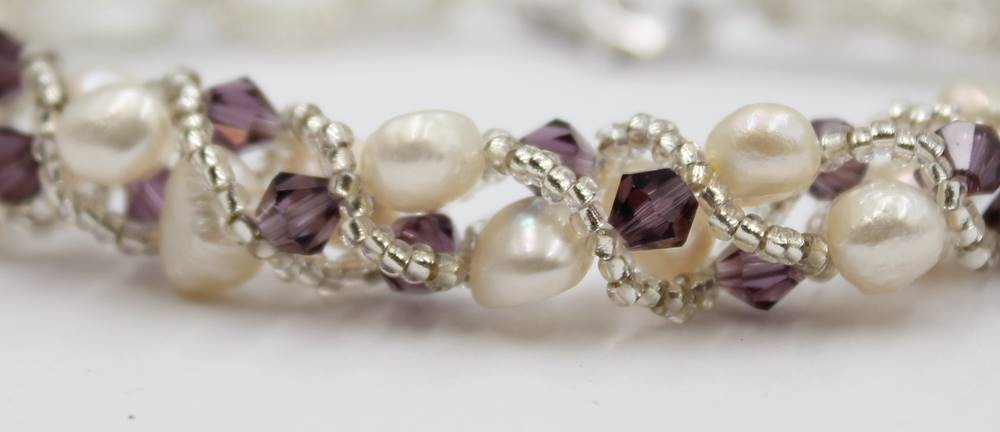 Armband, SW-Perlen und wohl Amethyste, Silberschließe, ca. L-19,5cm [1]