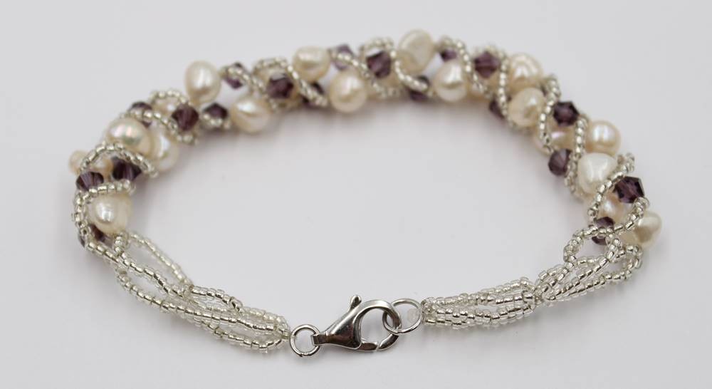Armband, SW-Perlen und wohl Amethyste, Silberschließe, ca. L-19,5cm