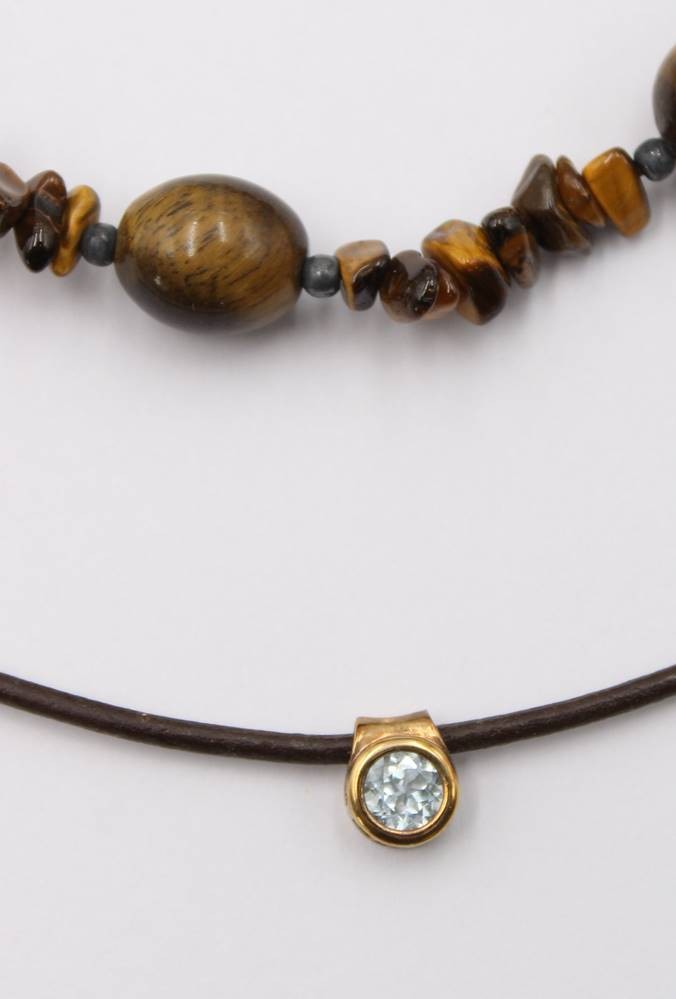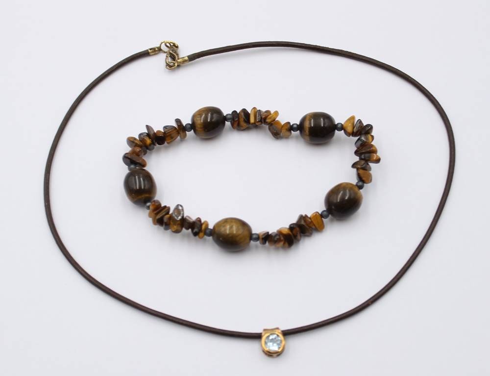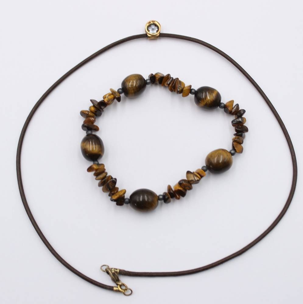 Armband Tigerauge sowie kl. Silberanhänger an Kautschukband, Kette ca. L-40cm
