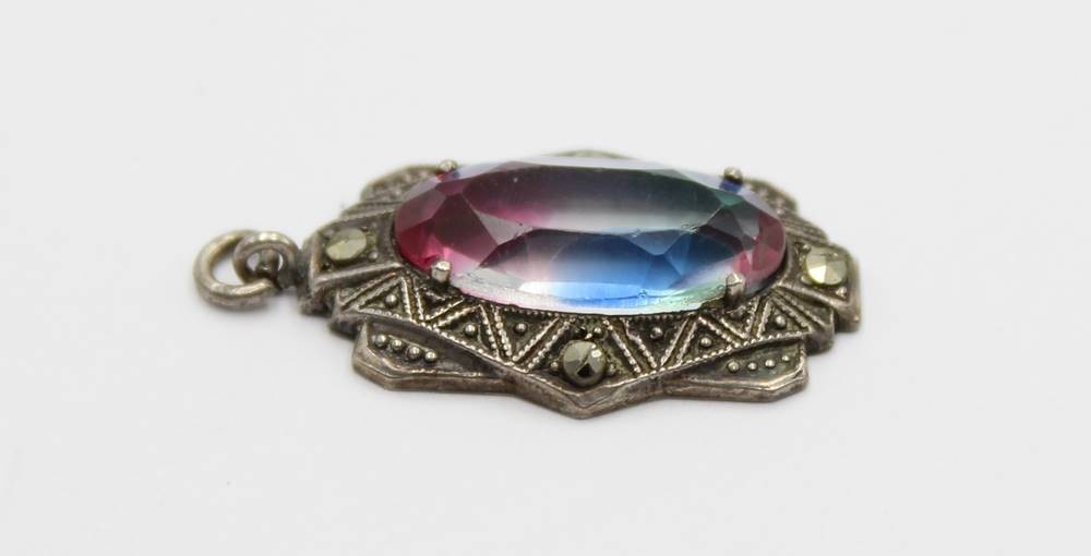 Art-Déco Silber-Anhänger, Rheinkiesel und Markasiten, zus. ca. 2,4gr., L-2,5cm [1]