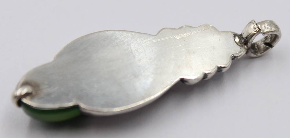 Art Deco Anhänger mit einem grünen Stein, wohl Dänemark, in der Art von G.Jensen, Silber getestet, L- 3,5 cm, 3 gr. [1]