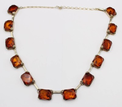 Bernstein-Collier, 925er Silber, vergoldet, 49gr., L-56cm [1]