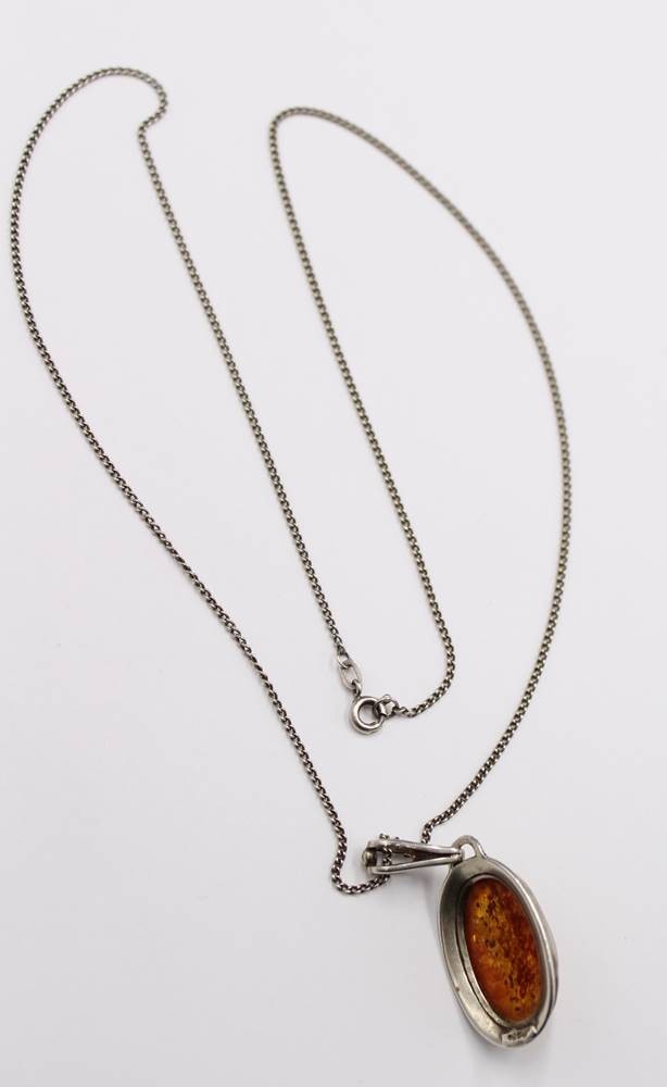 Bernsteinanhänger in 835er Fassung an 835er Kette, zus. 6,7gr., L-50cm Anh. L-4cm [1]