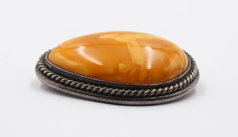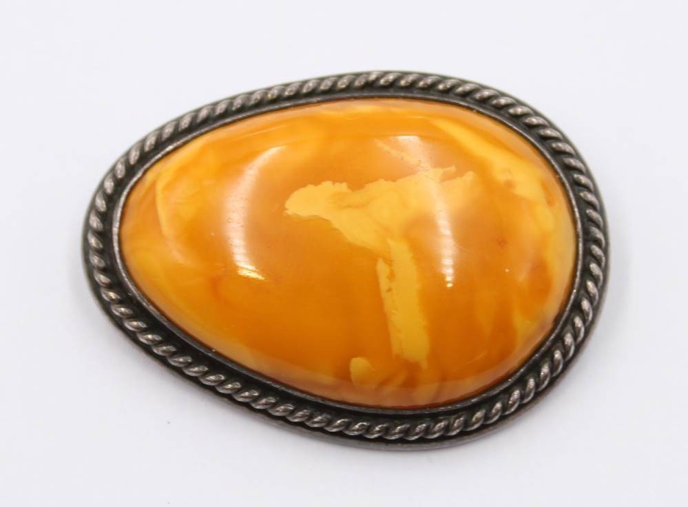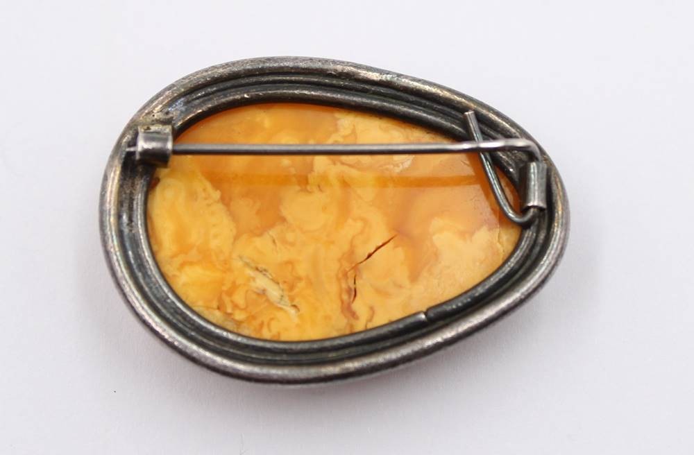 Bernsteinbrosche mit 925er Silberfassung, 18,2gr., 4,5 x 3cm [1]