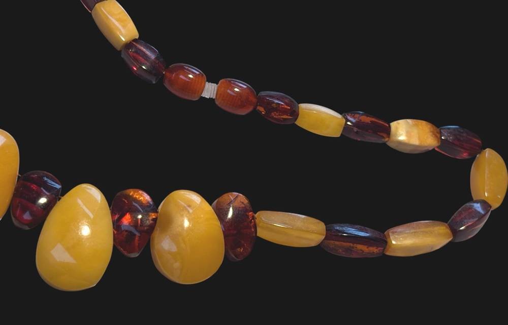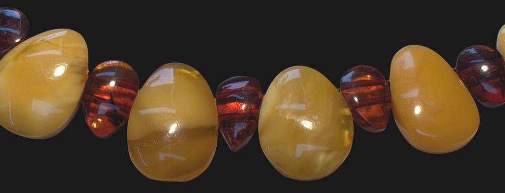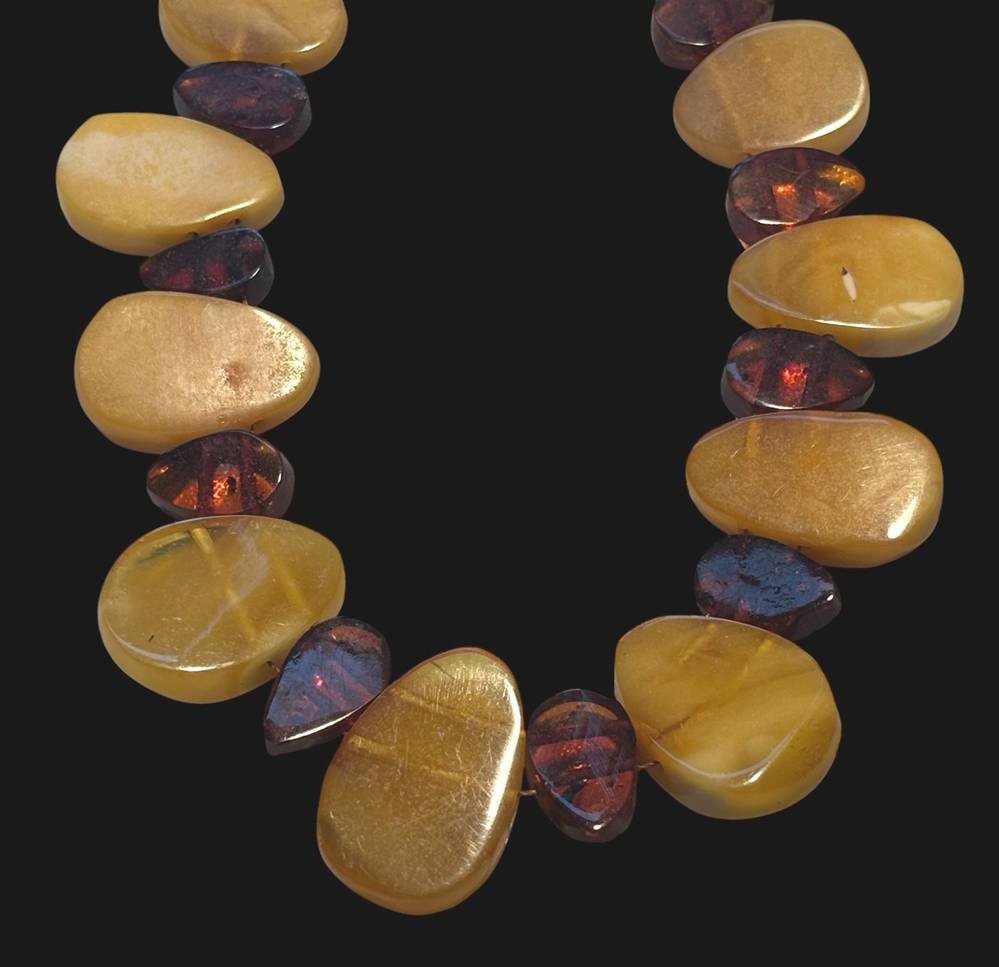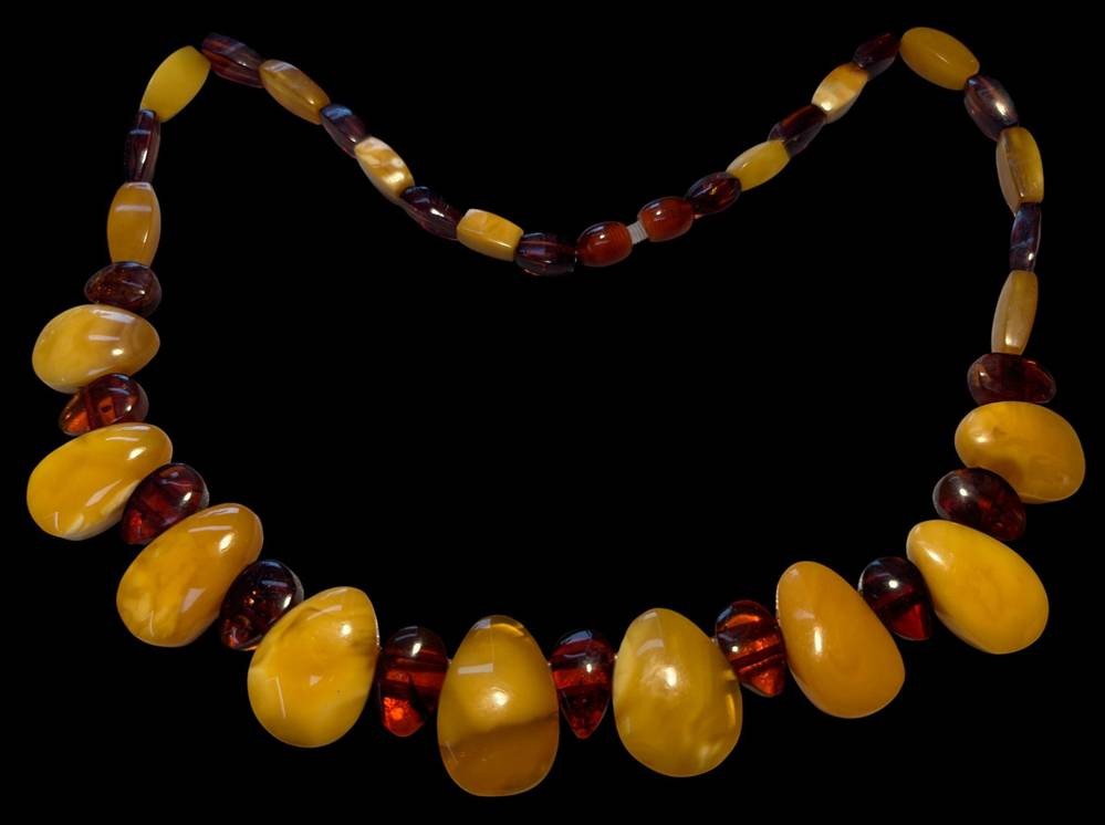 Bernsteinkette, gelb/braun, eiförmig im Verlauf,L-48 cm, ca. 24 gr. [1]