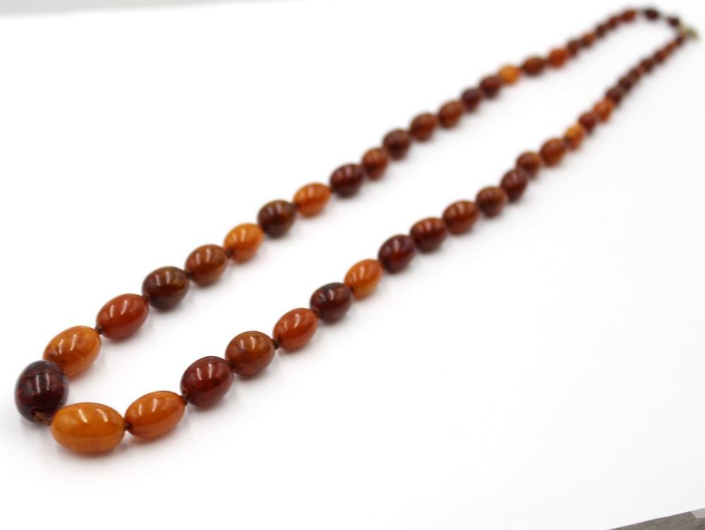 Bernsteinkette, olivenförmige Steine im Verlauf, 28,7gr., L-74cm [1]