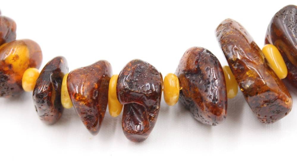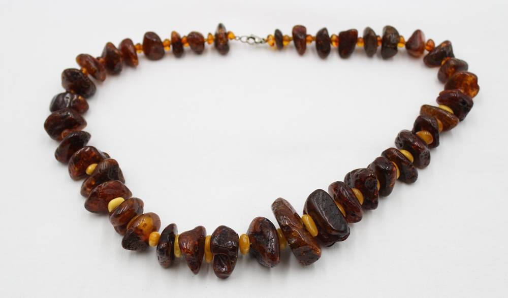 Bernsteinkette, Steine im Verlauf, älter, 1x Stein beschädigt, 68,4gr., L-50cm [1]