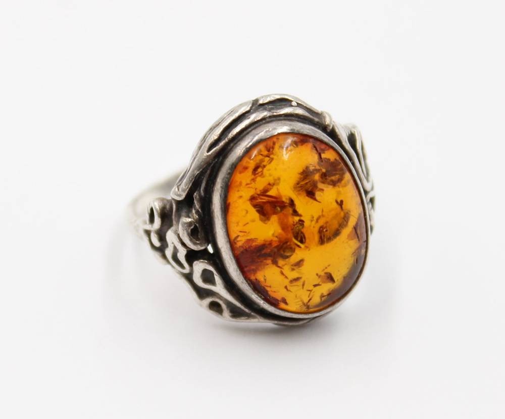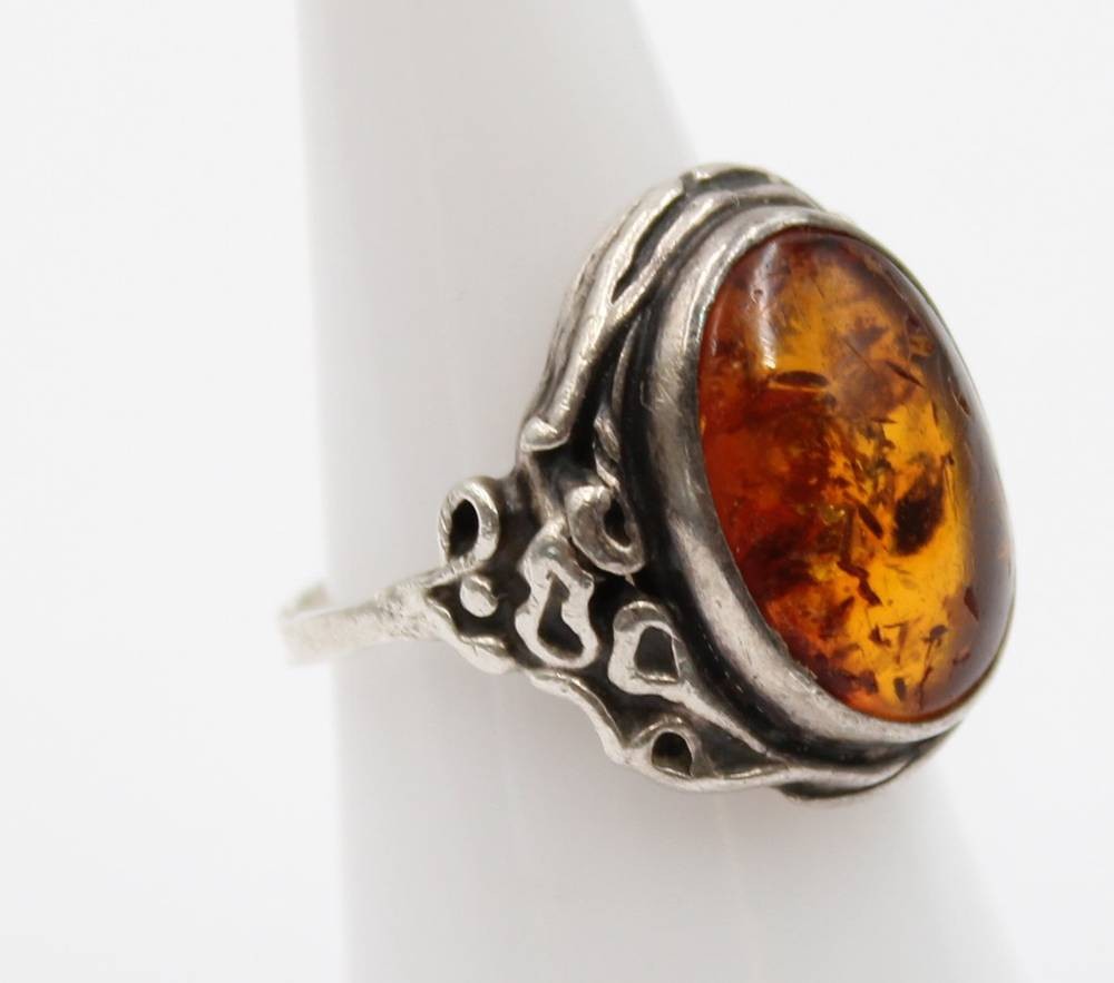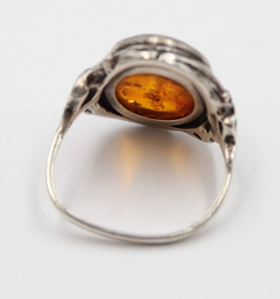 Bernsteinring, 925er Silber, Schiene verbogen, ca. 5,5gr., RG 58 [1]