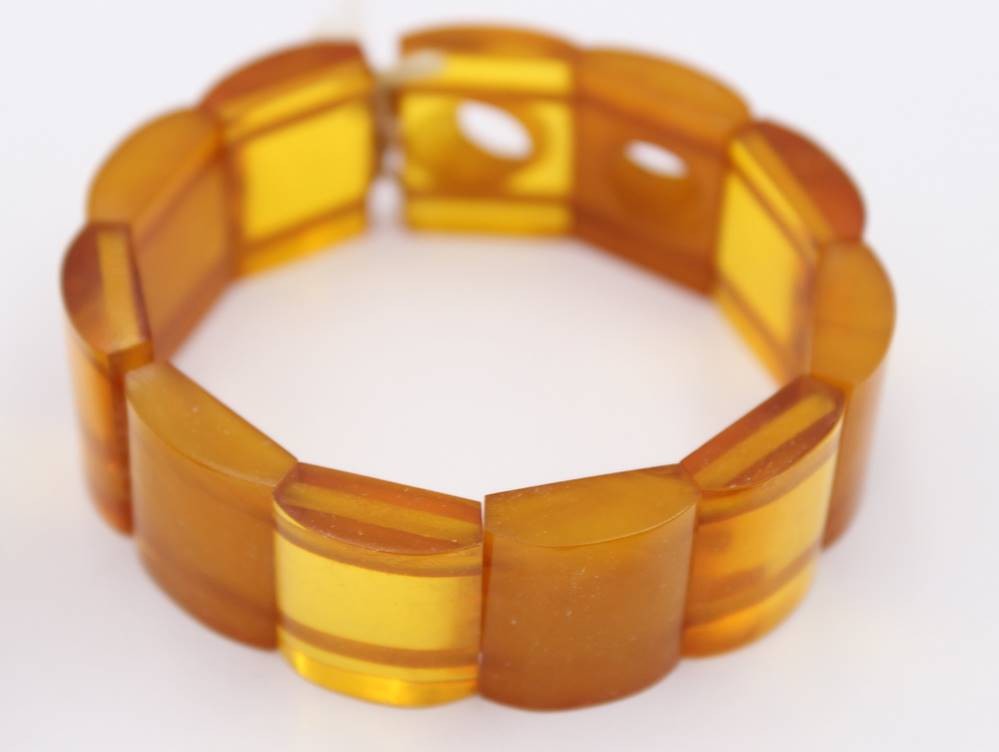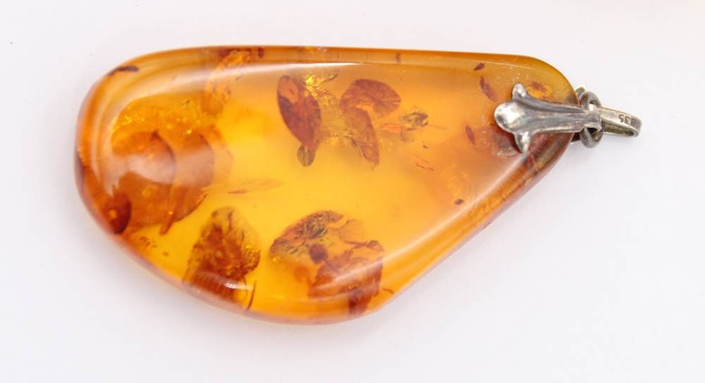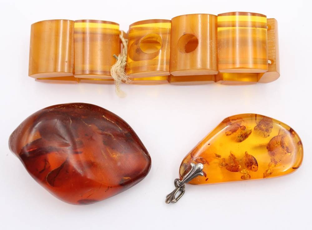 Bernsteinstück, Anhänger m. Silbermontur sowie Armband wohl Bakelit, ohne Armband ca. 22gr. [1]