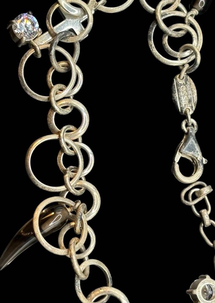 Bettelarmband "Fossil" Silber-925- mit 6 Anhängern, L-20,5 cm, 13 gr. [1]