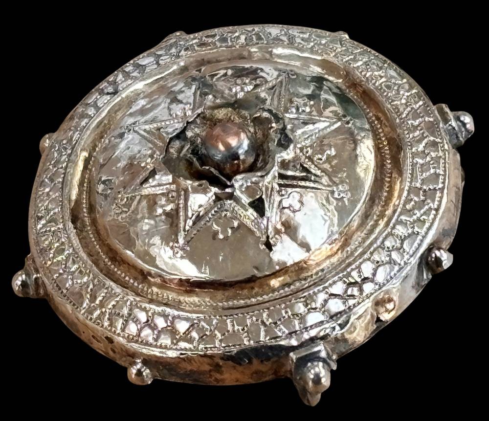Biedermeier Schaumgold Brosche, mittig mit Bruchstellen, D.-2,5cm, Altersspuren [1]